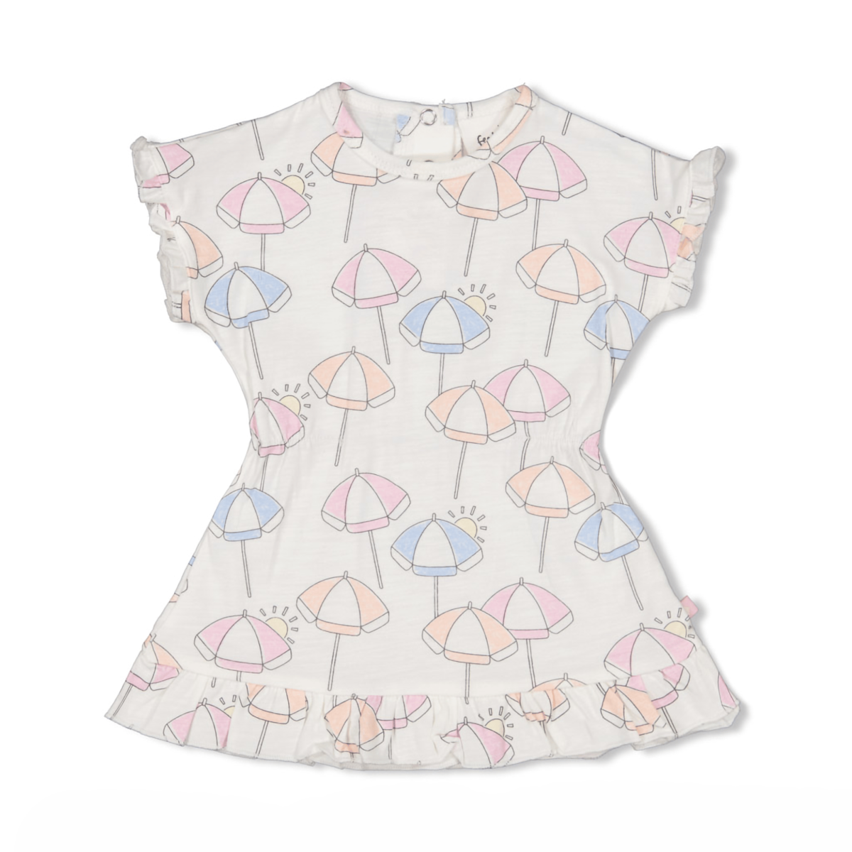 Mit dem Kleid Sonnenshirm von Feetje kann der Sommer endlich kommen. Das Design besticht durch die niedlichen Sonnenschirme und die gerüschten Ärmel. Dank des weichen Materials aus 96% Baumwolle ist das Kleid auch noch besonders bequem.