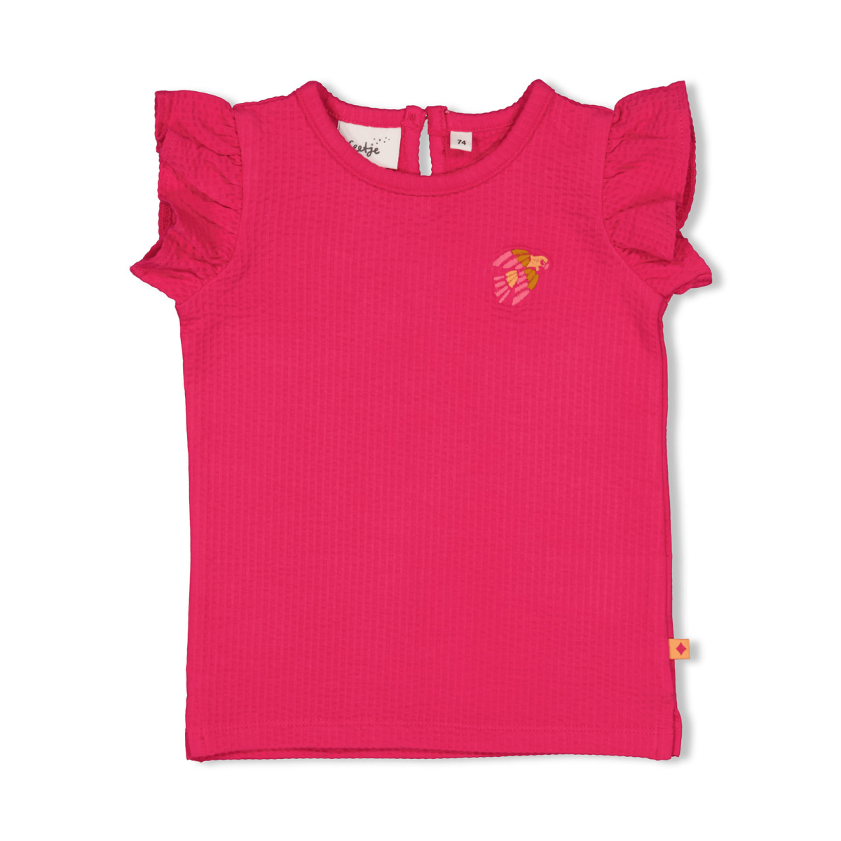 Mit dem T-Shirt von Feetje ist dein kleines Schätzchen perfekt für den Sommer vorbereitet! Das gelbe Shirt mit niedlichen Rüschen an den Ärmeln und dekorativen Knöpfen hat zusätzlich noch praktische Druckknöpfe an der Schulter für ein einfaches An- und Ausziehen. Hergestellt aus 100% Baumwolle entsteht zusätzlich ein angenehmer Tragekomfort.