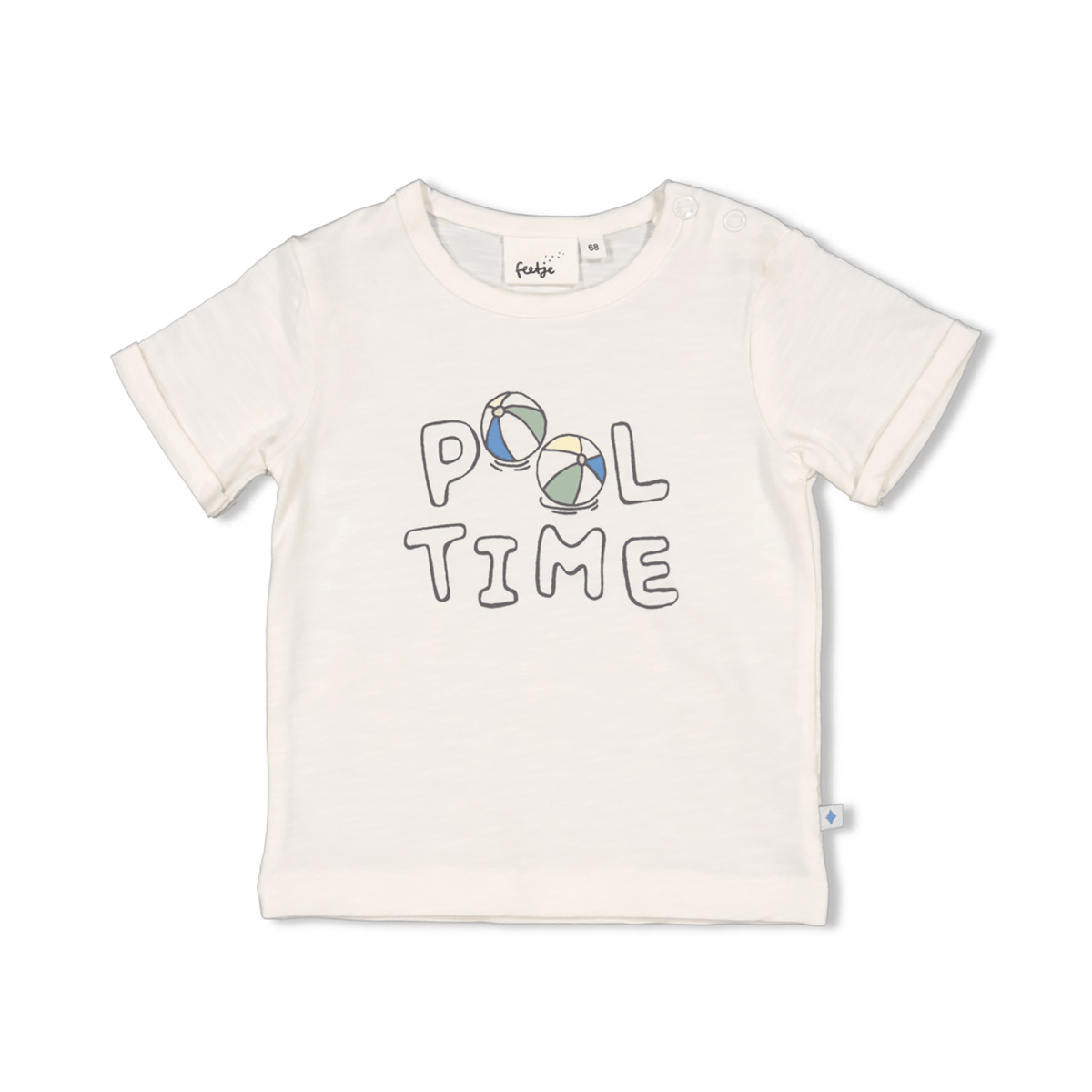 Das T-Shirt Pool Time von Feetje ist ein bequemes Oberteil für warme Tage. Der praktische Knopf am Hals und die Brusttasche verleihen dem Shirt einen stylischen Touch. Dank des weichen Baumwoll-Elasthan-Mixes ist das Shirt angenehm zu tragen und bietet viel Bewegungsfreiheit.