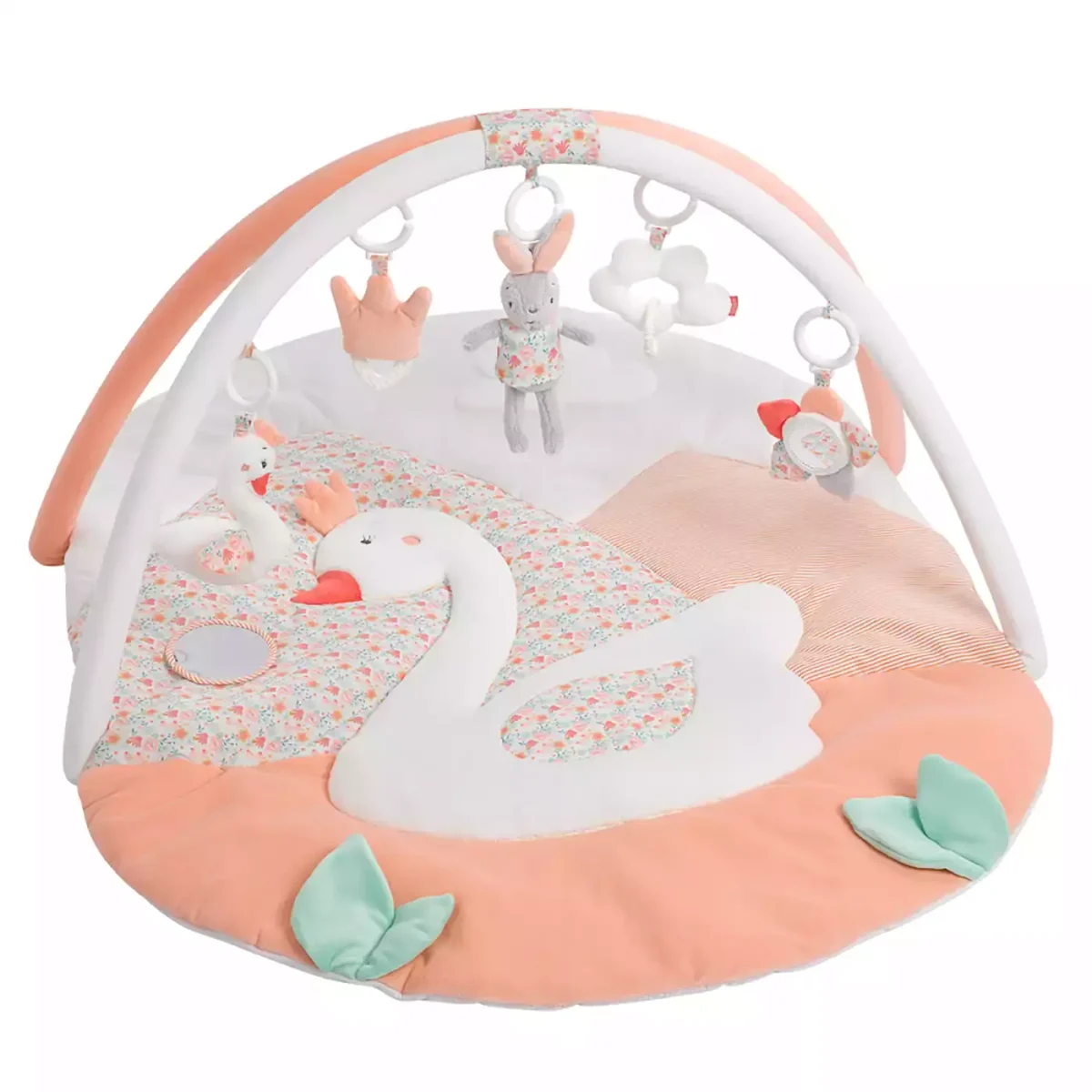 Die fehn 3D Activity Decke Schwanensee aus der Classic Stars Kollektion lädt dein Baby von Geburt an mit einer Liegefläche aus verschiedenen Materialien und Oberflächen zum Fühlen, Kuscheln sowie Spielen ein und fördert gleichzeitig durch die 3D verarbeiteten Figuren Hase, Schwan, Wolke, Krone und Blume den Tastsinn und die Hand-Auge-Koordination.