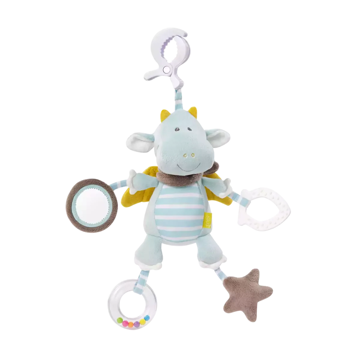 Mit der praktischen Klemme ist der Activity-Drache einfach und sicher an Babyschale, Kinderwagen, Laufgitter und Bettchen befestigt und wird so zum treuen Begleiter und absoluten Lieblingsspielzeug des Babys.