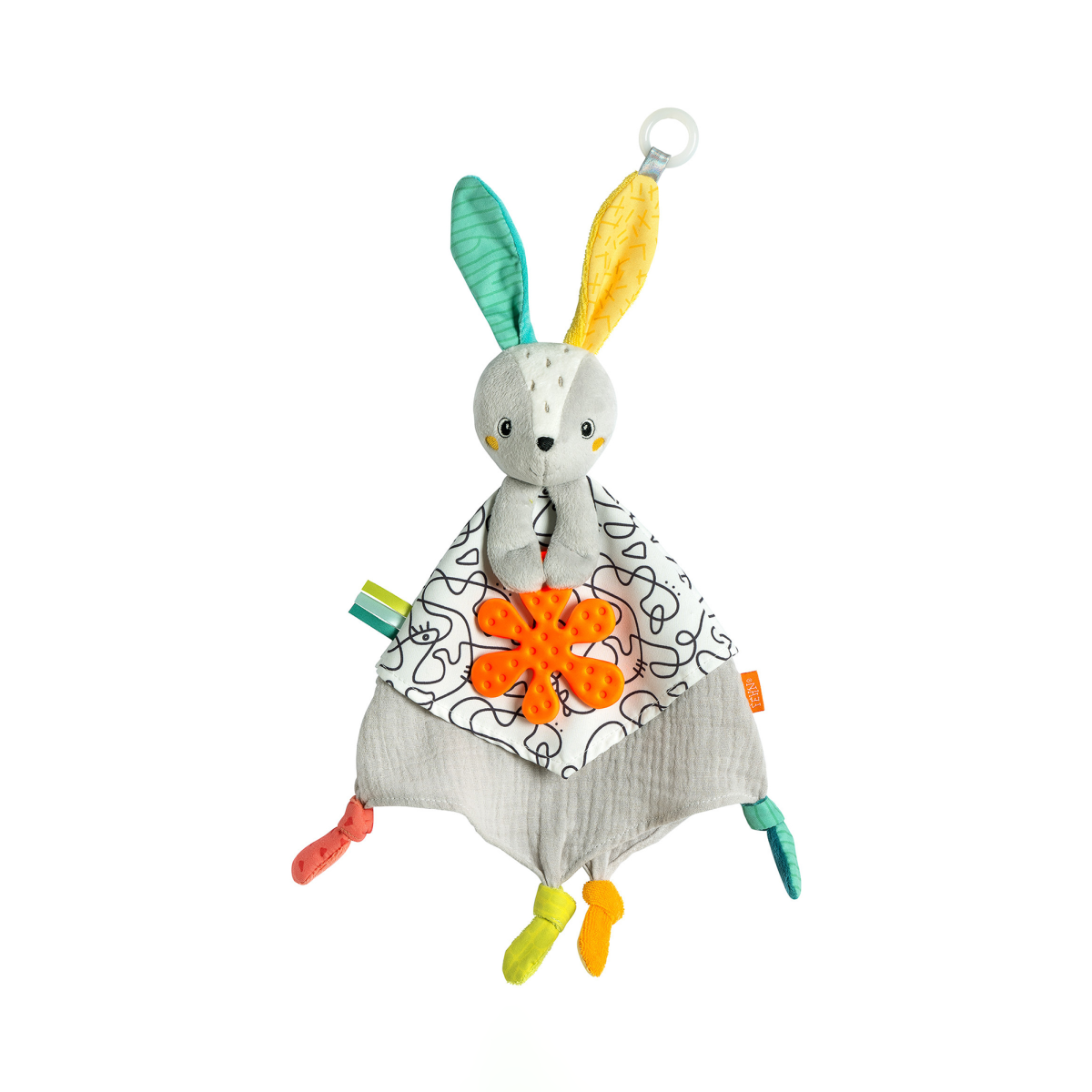Das Activity-Schnuffeltuch Hase von fehn ist mit vielen spannenden Funktionen ausgestattet, die die Sinne deines Kindes fördern und seine Neugier wecken. Es verfügt über eine eingebaute Rassel, die sanfte Geräusche erzeugt und so die akustische Wahrnehmung trainiert. Das Raschelpapier im Inneren sorgt außerdem für zusätzliche Stimulation und regt den Tastsinn an. Die Beißer bieten deinem Baby Linderung beim Zahnen und fördern die motorische Entwicklung.