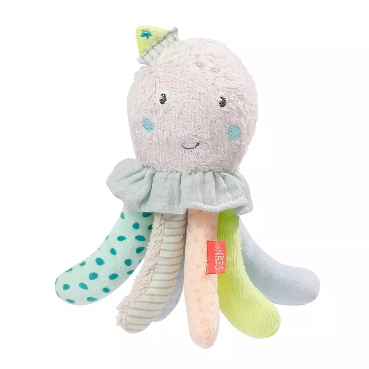 Die sanften Farben und kuscheligen Materialien des Badetieres sind besonders weich zur Haut deines Babys und laden zum Greifen, Fühlen und Spielen ein. Der kleine Oktopus fühlt sich im Badezimmer zuhause – mit dem Meeresbewohner wird das Baden zum Vergnügen für jedes Baby.