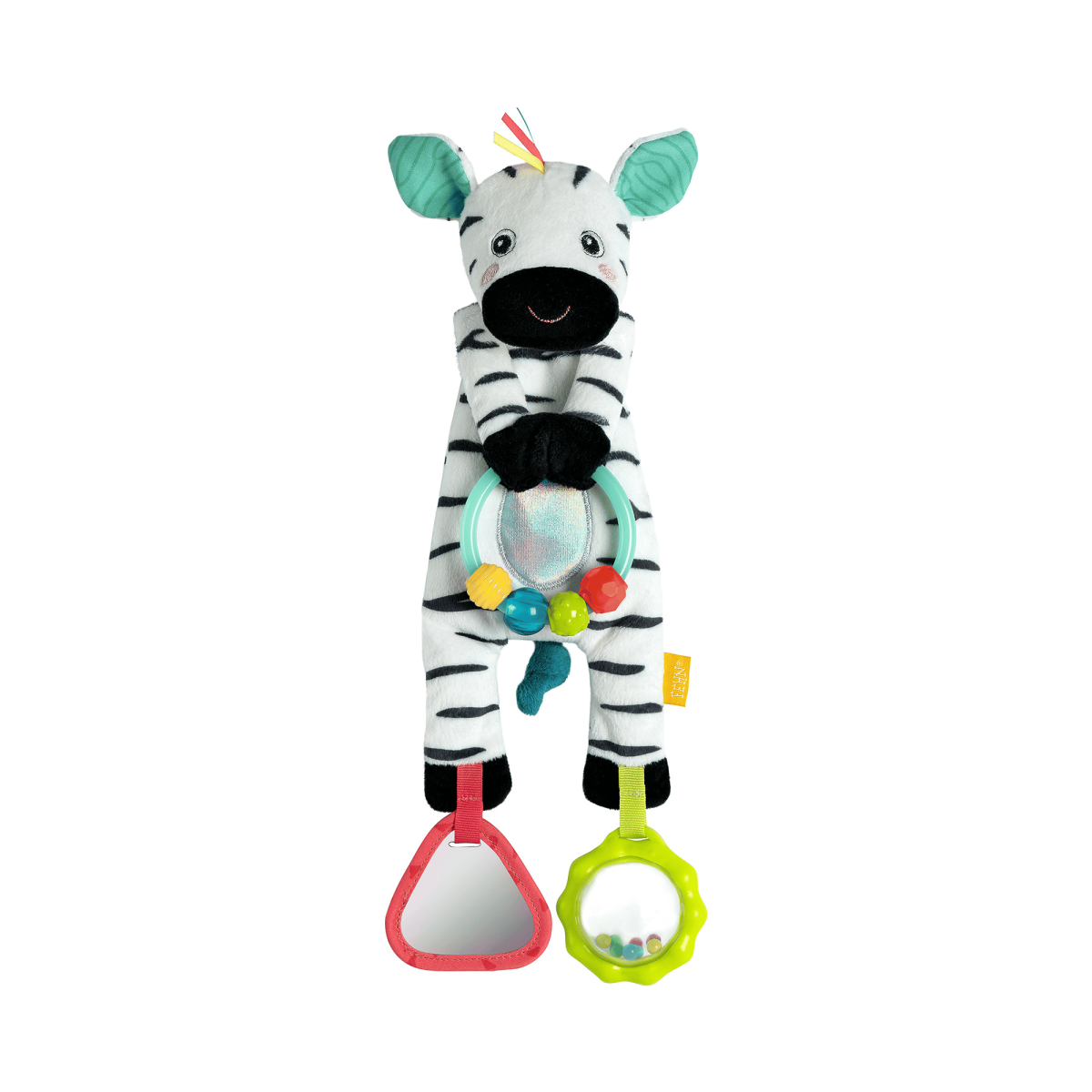 Das Bean Bag Zebra verfügt außerdem über viele weitere aufregende Funktionen: Es enthält einen Perlenring, der lustige Geräusche erzeugt, wenn er bewegt wird. Die Ballrassel sorgt für zusätzliche akustische Stimulation und fördert das Greifen. Ein Spiegel bietet deinem Schatz die Möglichkeit, sich selbst zu entdecken und schult gleichzeitig das Sehen. Das Raschelpapier im Inneren des Spielzeugs erzeugt spannende Geräusche und die quietschende Funktion des Zebras sorgt für zusätzlichen Spaß und Unterhaltung für deinen Liebling.