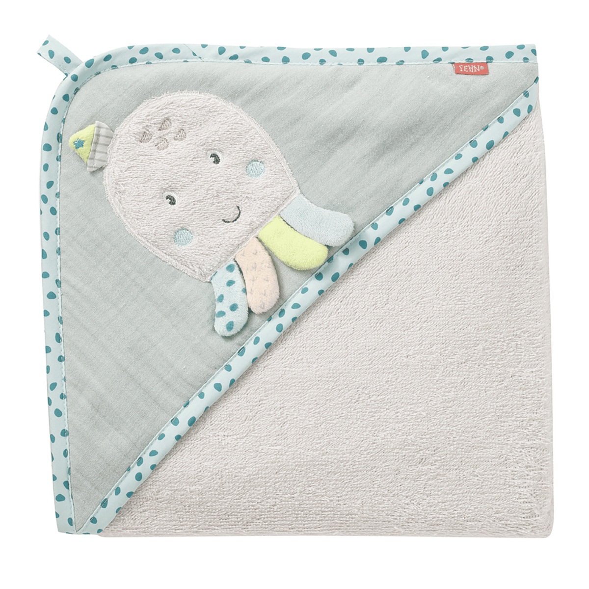 Das flauschige Badehandtuch mit den Maßen 80×80 cm sorgt für angenehmen Kuschelspaß: Dein kleiner Liebling kann sich sicher und geborgen in das Tuch einkuscheln – die süße Kapuze mit Oktopus hält das Köpfchen zusätzlich warm!