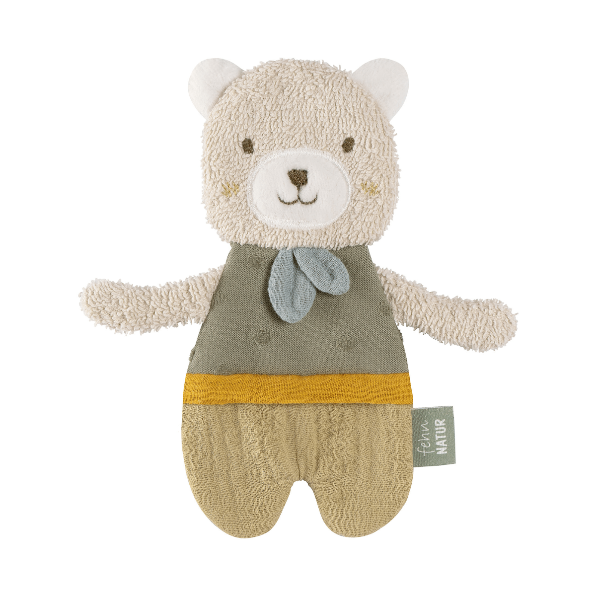 Dieser niedliche Knister-Bär aus der fehnNATUR® Kollektion ist der ideale Begleiter für Babys und Kleinkinder von Geburt an. Er regt spielerisch Babys Sinne an und fördert gleichzeitig die Motorik. Mit den anregenden Geräuschen des verborgenen Raschelpapiers wird es nie langweilig.