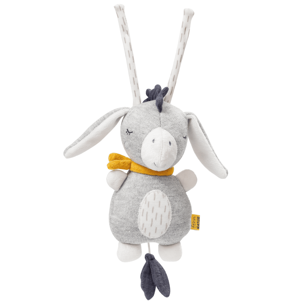 Die Mini-Spieluhr Esel von fehn ist ein entzückendes und liebevoll gestaltetes Spielzeug, das dein Baby sanft in den Schlaf begleitet! Mit seinem integrierten und herausnehmbaren Spielwerk zum Aufziehen wird es zu einem treuen Begleiter in der Nacht oder während des Mittagsschlafs.