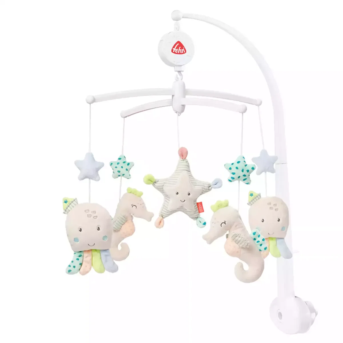 Das bezaubernde fehn Musik-Mobile aus der Meereskinder Kollektion bringt Babyaugen zum Leuchten und ist eine ideale Einschlafhilfe. Die kleinen Meerestiere drehen sich fröhlich zur schönen Melodie „Schlaf Kindlein Schlaf“ im Kreis und regen dein Baby zum Schauen und Lauschen an. Das Mobile wird ganz einfach am Babybett befestigt und ist sicher schnell nicht mehr weg zu denken!