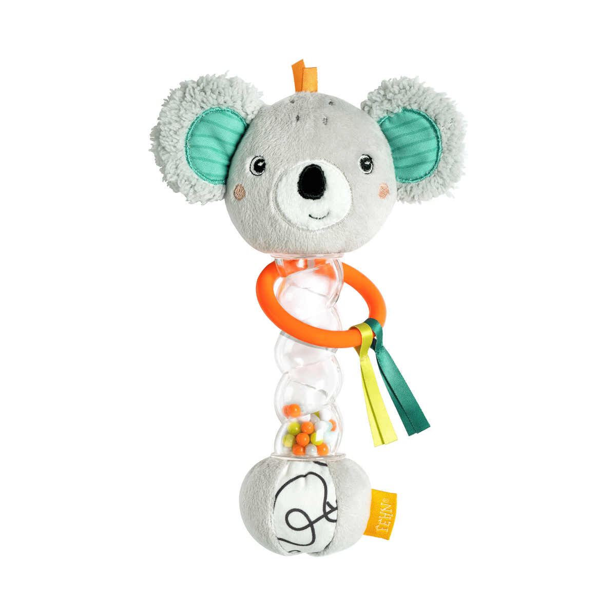 Dieser niedliche Regenmacher Koala von fehn wird deinen kleinen Liebling mit seinen vielseitigen Funktionen begeistern! Er kombiniert einen Rasselstab, eine Quietsche, Raschelpapier und einen Greifring in einem Spielzeug. Das bedeutet, dass er nicht nur lustige Geräusche erzeugt, sondern auch unterschiedliche Texturen zum Entdecken und Erforschen bietet.