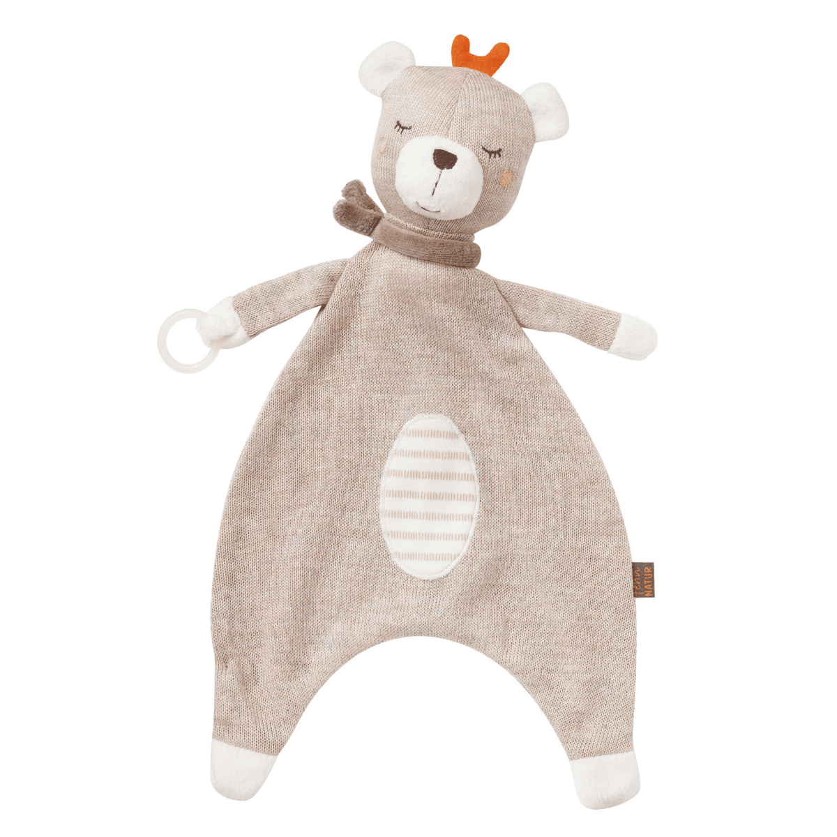 Dieses entzückende Schmusetuch Teddy von fehn wird das Herz deines kleinen Schatzes im Sturm erobern. Mit seinem niedlichen Design und dem weichen Obermaterial aus Bio-Baumwolle – Strick, Jersey, Nicki und Musselin – wird es dein Kind von den ersten Monaten an begleiten. Der praktische Befestigungsring für herkömmliche Schnuller mit und ohne Henkel macht es zum treuen Begleiter für unterwegs und zu Hause. Die Füllung aus Bio-Baumwolle sorgt für natürliche Weichheit und ist besonders hautfreundlich. Ob zur Geburt, Taufe oder als liebevolles Geburtstagsgeschenk – dieses Schmusetuch wird dein Kind über viele glückliche Momente hinweg begleiten.