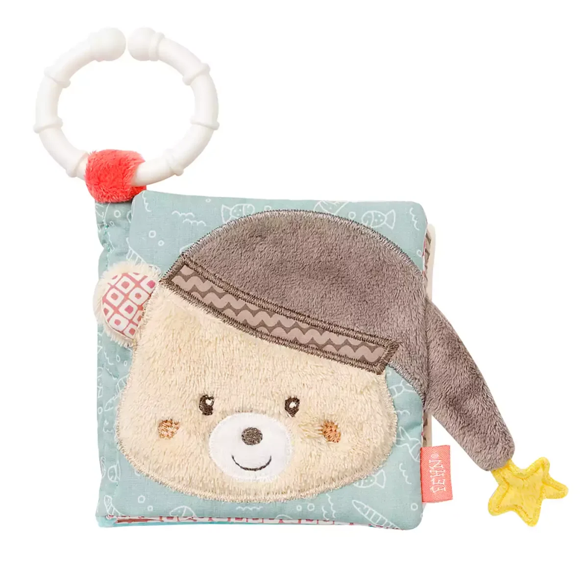 Der kuschelige Bär Bruno und sein Freund Sammy, der Sägefisch aus der Bruno Kollektion laden zusammen mit Stern, Mond und Wolke zum Entdecken, Forschen und Fühlen ein. Quietsche, Raschelpapier und die spannenden Materialien zaubern ein staunen ins Gesicht des Babys und fördern erste Greifübungen, den Tastsinn und tragen zur positiven Entwicklung der Ich-Wahrnehmung bei. Der Befestigungsring am kuscheligen Bilderbuch sorgt dafür, dass es ganz leicht und sicher an der Babyschale, am Kinderwagen, am Babybett oder im Auto befestigt werden kann.