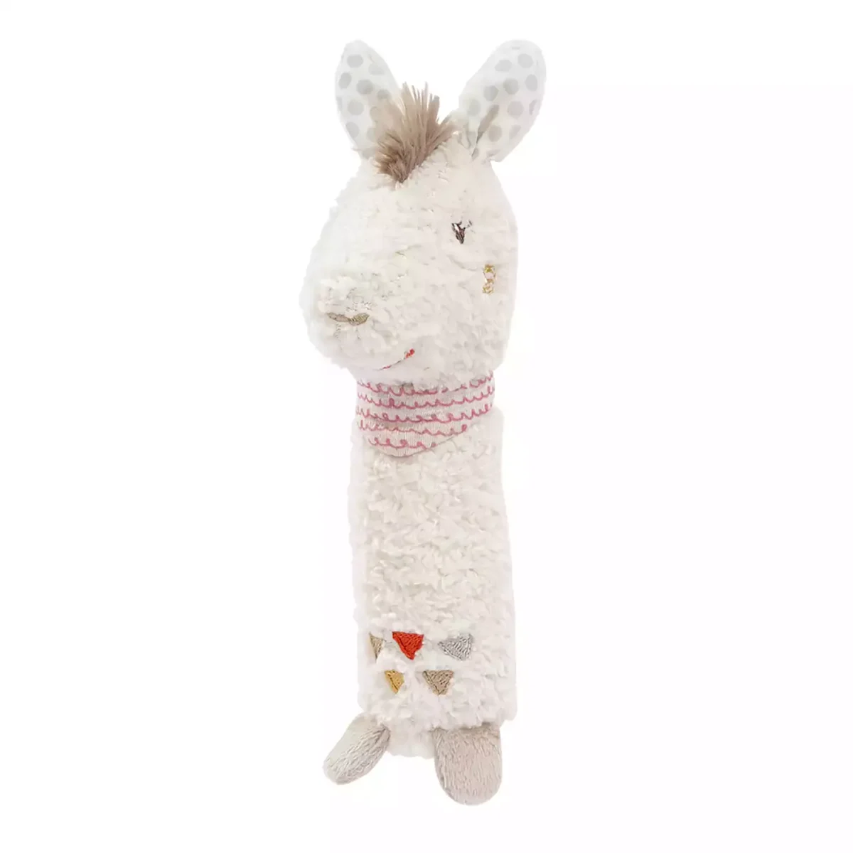 Der niedliche Stabgreifling Lama Peru von Fehn ist extra für kleine Babyhände geschaffen und somit für Kinder ab der Geburt geeignet. Das Lama ist durch seine Größe ein toller Begleiter für zuhause und unterwegs. Die Quietschgeräusche aus dem Greifling wecken die Neugier und das Interesse deines Babys und laden zum Entdecken und Forschen ein. Durch das Fühlen und Tasten des weichen Materials werden erste Greif- und Fingerübungen unterstützt und spielend der Hör-, Greif- und Tastsinn sowie die Feinmotorik gefördert. Das ideale Geschenk zur Geburt, Taufe oder zum Geburtstag.