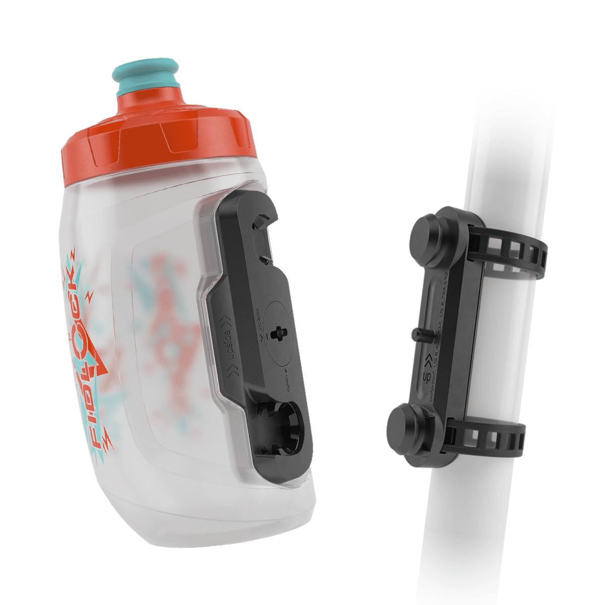 Die TWIST Bottle 450 Kids mit Uni Base von Fidlock ist ein echter Blickfang für Kinder. Mit einem lebendigen Design, das mit bunten Blitzen punktet, fängt sie spielend die Aufmerksamkeit kleiner Entdecker ein.