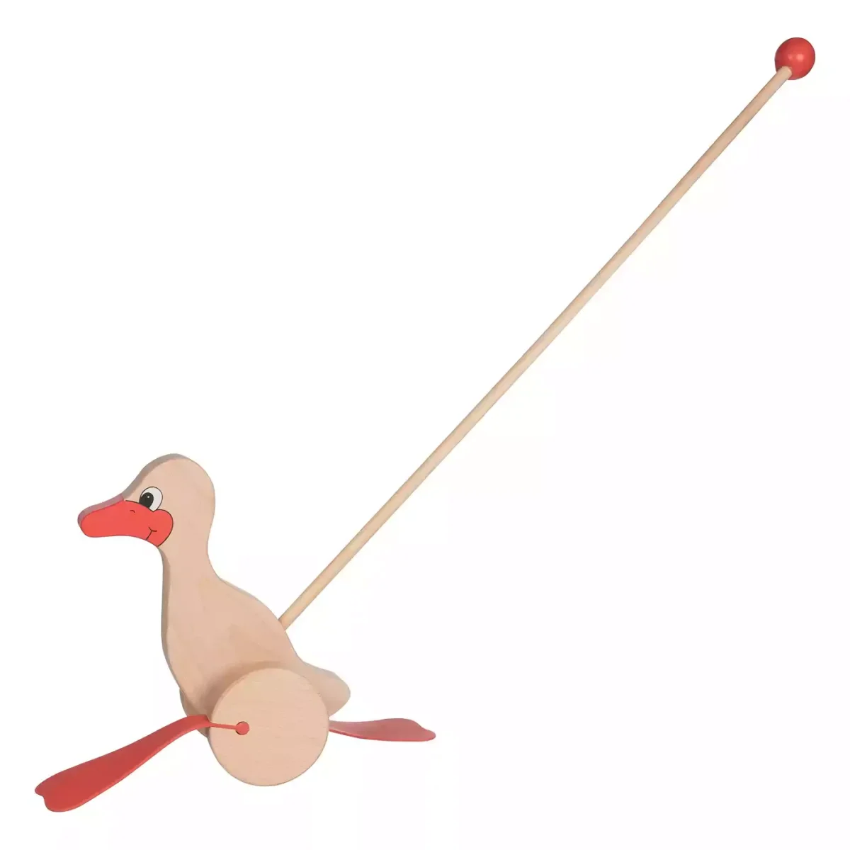 Die Schiebtier Ente von Goki watschelt lustig voran und animiert dein Kind zum Laufen. Das Goki Schiebtier ist aus Holz hergestellt und ca. 21 cm groß.