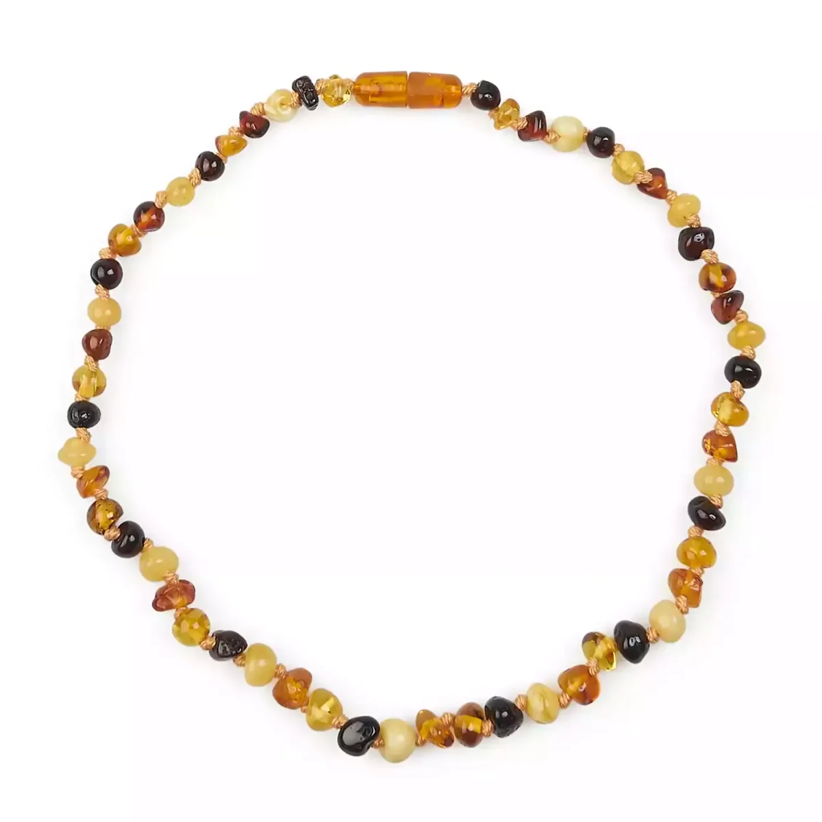 Die Baby-Bernsteinkette Barock von Grünspecht ist ein handgefertigtes Einzelstück aus baltischem Naturbernstein. Farb- oder Formunterschiede sind normal. Jeder Stein wurde per Hand einzeln verknotet.