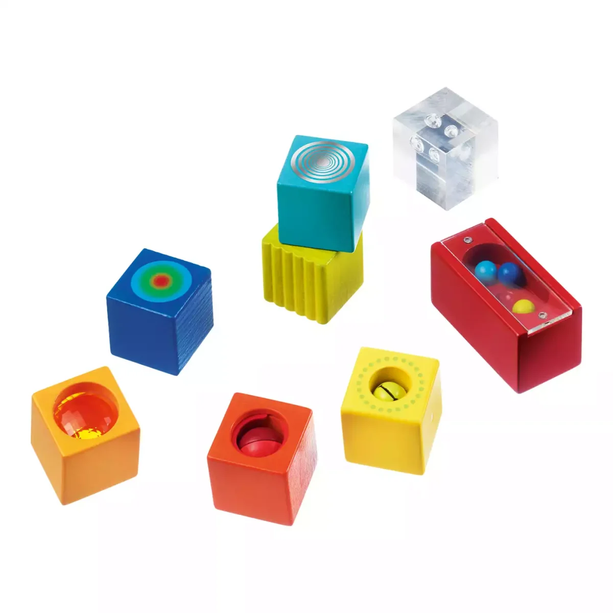 Stein für Stein entdecken kleine Stapelkünstler mit den spannenden Haba-Entdeckersteinen Farbenspaß die Welt des Bauens. Wie setzt man die farbenfrohen Steine am besten aufeinander und wie hoch kann man stapeln bevor der Turm kippt? Glöckchen, Rassel, Durchguck, Kugelspiel und andere Effekte machen das Bauen besonders interessant. Beim genauen Schauen, Hören und Fühlen entdecken deine Kinder die Bausteine mit allen Sinnen und lernen spielerisch einfachste physikalische Zusammenhänge kennen. Außerdem ist es ein prima Training für die Auge-Hand-Koordination und für die Feinmotorik.