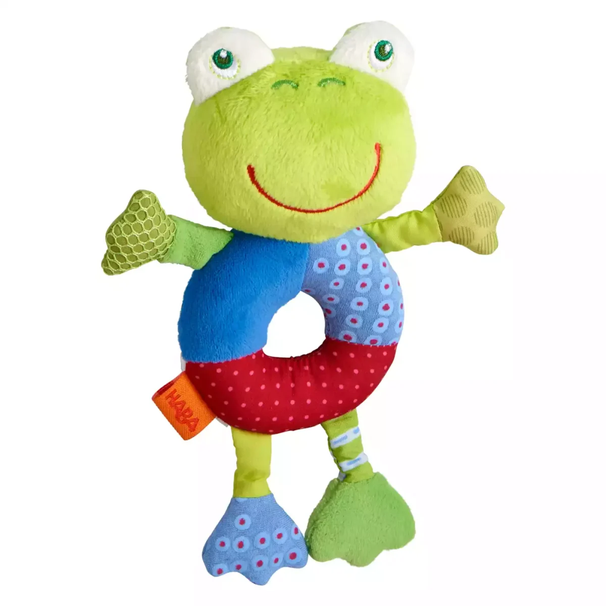 Der HABA Greifling Frosch Fredi ist wunderbar weich und sorgt im Nu für gute Laune auf der Wickelkommode, im Babybettchen oder auch unterwegs dank des breiten Grinsens im Gesicht. Unterschiedliche Stoffe und Muster wecken schnell das Interesse von Babys und animieren gleichzeitig zum Erkunden, Greifen und Spielen.