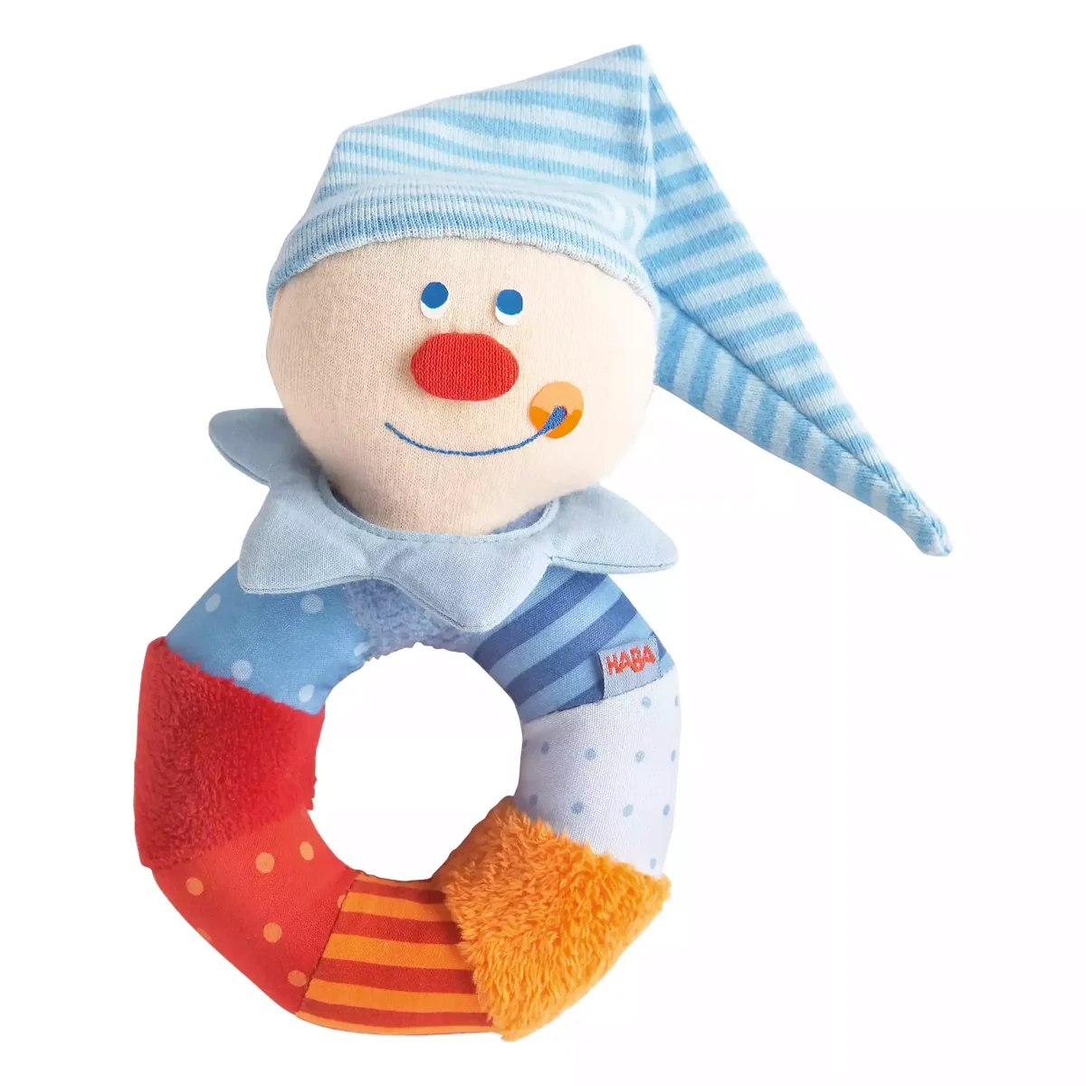 Der farbenfrohe HABA Greifling Kasper Ringel wird schnell zum besten Freund deines Babys von Geburt an – ob als Kuschel-Kasper beim Einschlafen oder als Spielzeug unterwegs. Dein kleiner Liebling wird das lustige Gesicht mit der roten Knubbelnase und Zipfelmütze lieben.