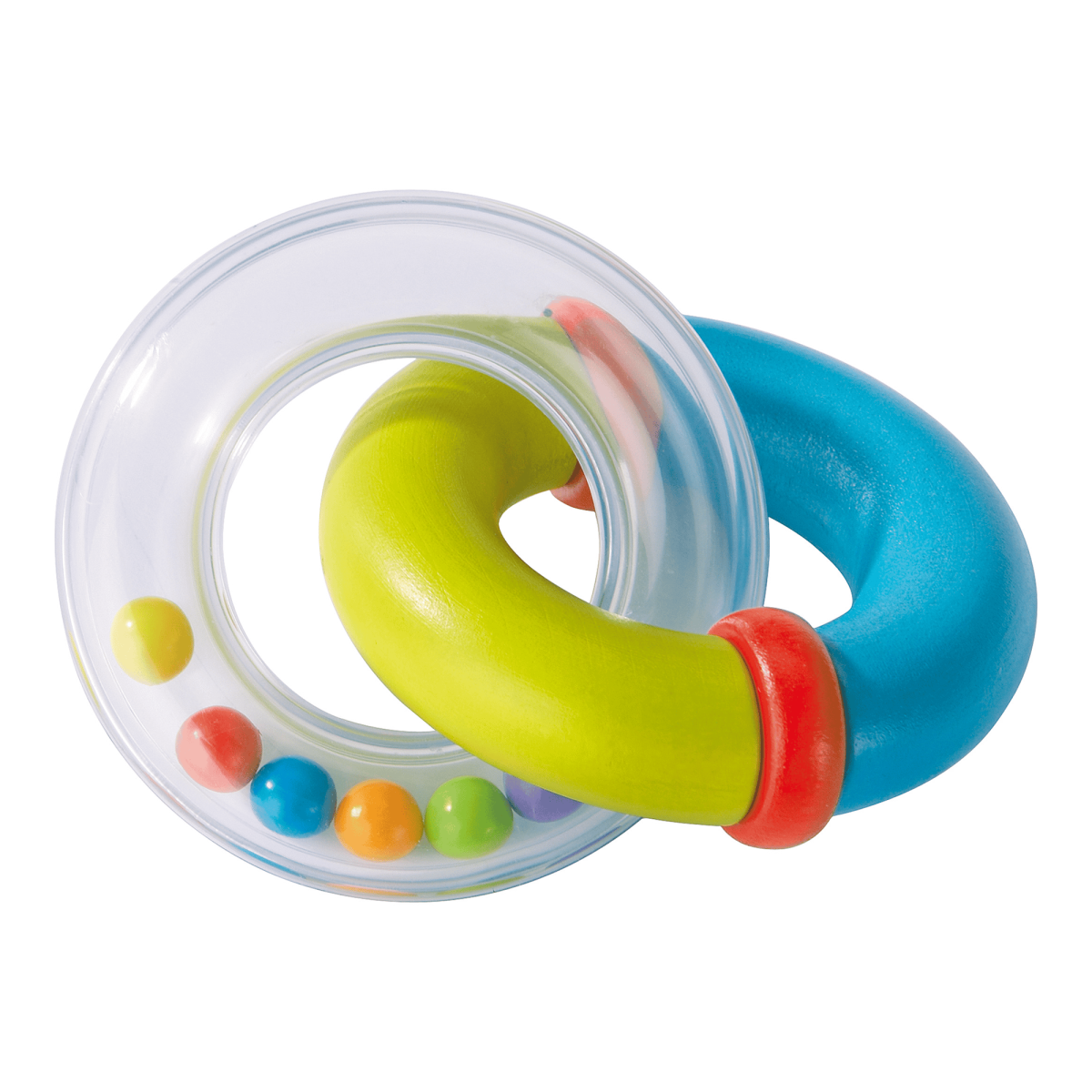 Dieser kunterbunte Greifling Ringel-Duo von HABA fördert spielerisch die Hand-Auge-Koordination deines Nachwuchses. Dank der kleinen Kügelchen im Inneren rasselt der Greifling lustig und bietet deinem Kind so jede Menge Abwechslung und akustische Reize.