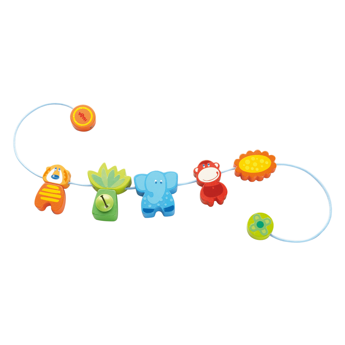 Die kunterbunte Kinderwagenkette Dschungelbande von HABA lädt deinen Nachwuchs zum Schauen und Entdecken ein. Die tollen Dschungel-Tiere sind ein echter Hingucker. Die erste Hand-Auge-Koordination wird gefördert und spielerisch wird die Selbstwahrnehmung und die frühkindliche Entwicklung unterstützt. Die klingelnde Spielkette ist schnell an Kinderwagen, Babyschale, Bettchen, Wiege oder Spielbogen befestigt und sorgt so für spannenden Lernspaß zuhause und unterwegs.