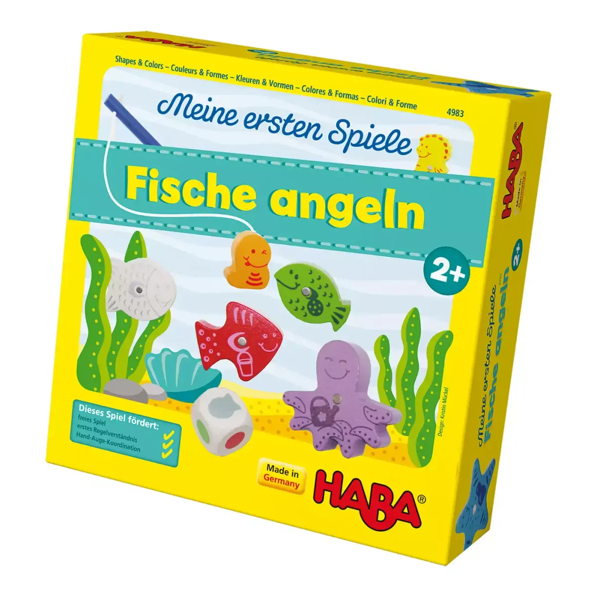 Im freien Spiel beschäftigt sich dein Kind mit der Angel, dem Meer sowie den lustigen Meeresbewohnern. Diese schwimmen munter durcheinander und finden allerhand spannende Dinge zum Spielen. Im Regelspiel ist es die Aufgabe der Kinder, einen Fisch in der entsprechenden Würfelfarbe zu angeln. Gelingt das, bekommt dein Kind vom Fisch ein Spielzeug geschenkt, das es dann in seine Ablage puzzeln darf. Wer ist der beste Angler und hat als Erster alle Spielzeuge gesammelt?