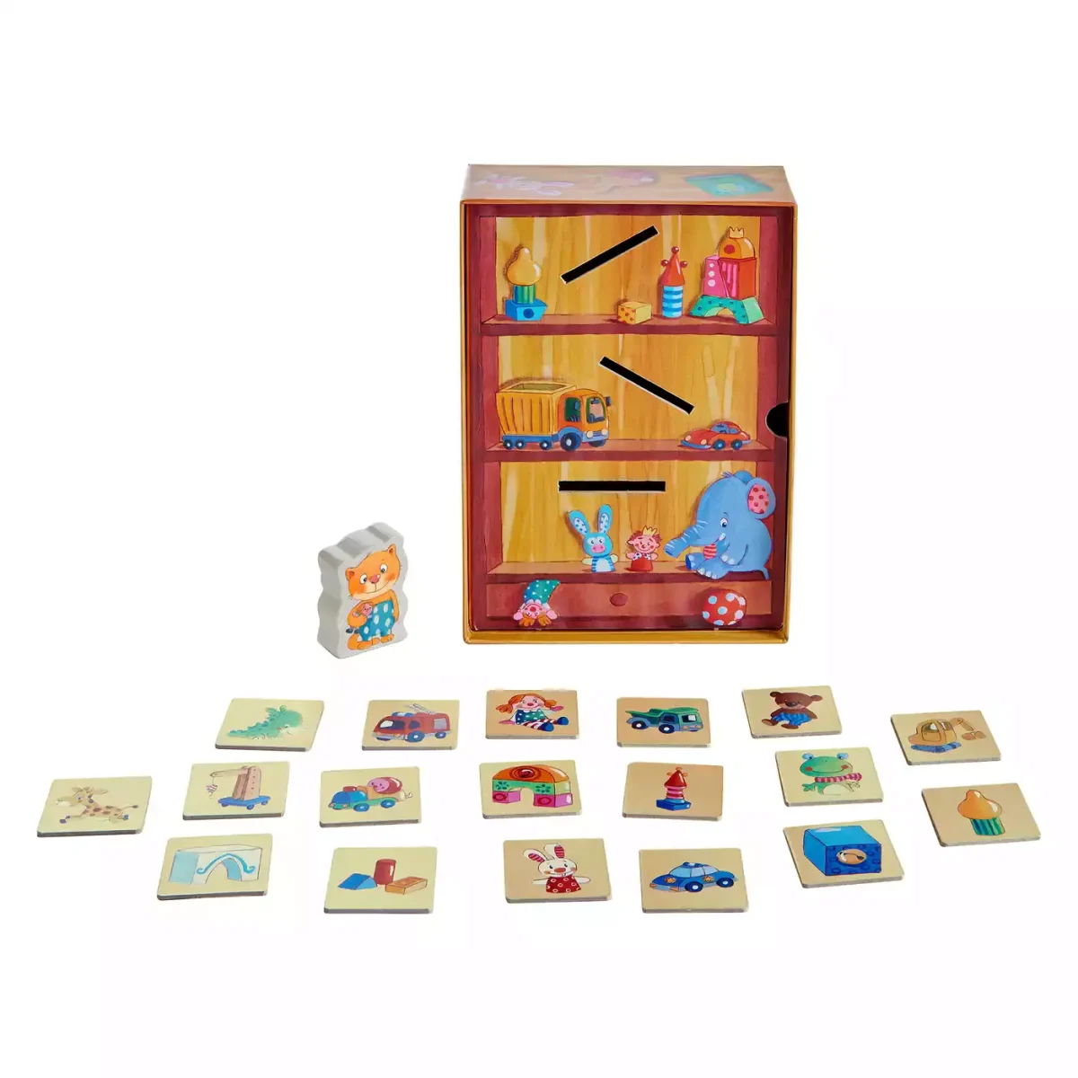 Der kleine Kater Tapsi hat den ganzen Tag gespiet… jetzt ist es Zeit, aufzuräumen. Doch wohin kommen die Bausteine? Wo findet die Feuerwehr einen Platz und wohin gehört die Kuschelgiraffe? Wer die Spielzeugplättchen richtig zuordnet, hilft Tapsi dabei, Ordnung zu schaffen.