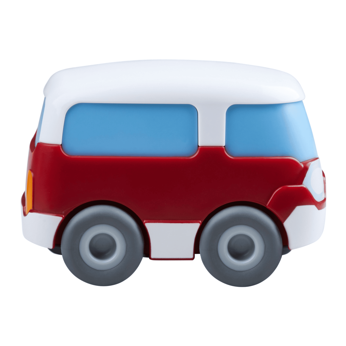 Der Spielzeugbus von HABA erobert die Kullerbü-Strecken. Kurz anschieben und schon geht’s los. Mit Schwungmotor ist das rote Spielzeug-Auto schnell unterwegs. Auch auf dem Tisch und dem Fußboden meistert das Auto für Kinder ab ca. 2 Jahren schwungvoll größere Strecken. Die detaillierte Gestaltung regt zu fantasievollen Spiel-Abenteuern in Kullerbü an. Mit kompakten Maßen und abgerundeten Kanten lässt sich der Spielzeug-Bus bequem von kleinen Kinderhänden greifen und halten.