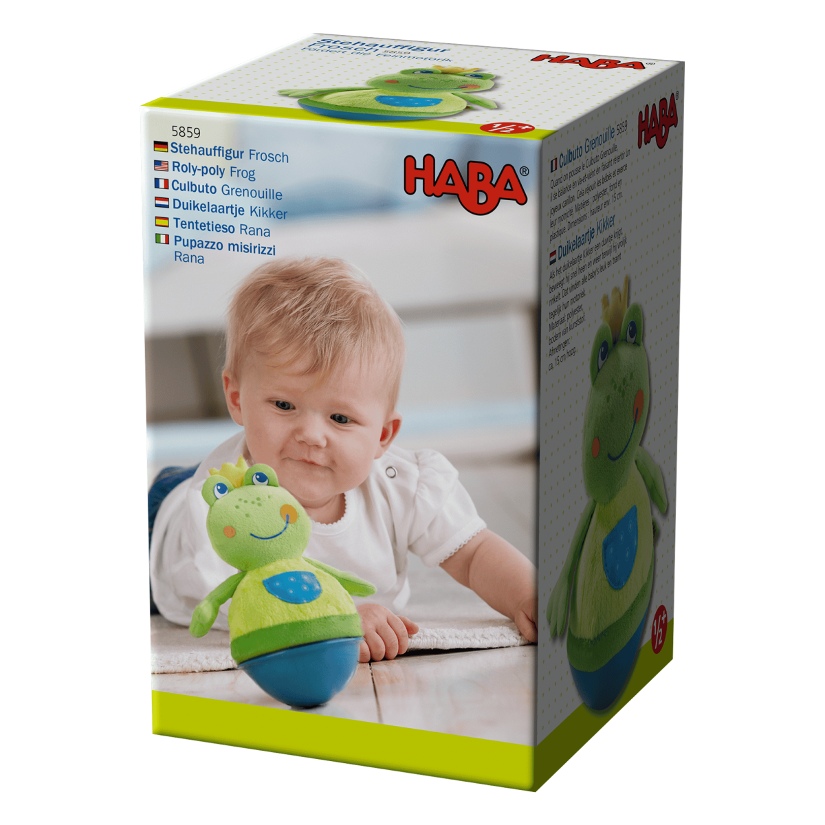 Die HABA Stehauffigur Frosch ist ein fröhlicher Begleiter an der Seite deines kleinen Lieblings! Ein kleiner Stups genügt und der niedliche Frosch setzt sich in Bewegung – ein witziges Wackeln und Klingeln beginnt! Das dezente Klingeln ist extra sanft gehalten, um die zarten Öhrchen deines Lieblings zu schützen.
