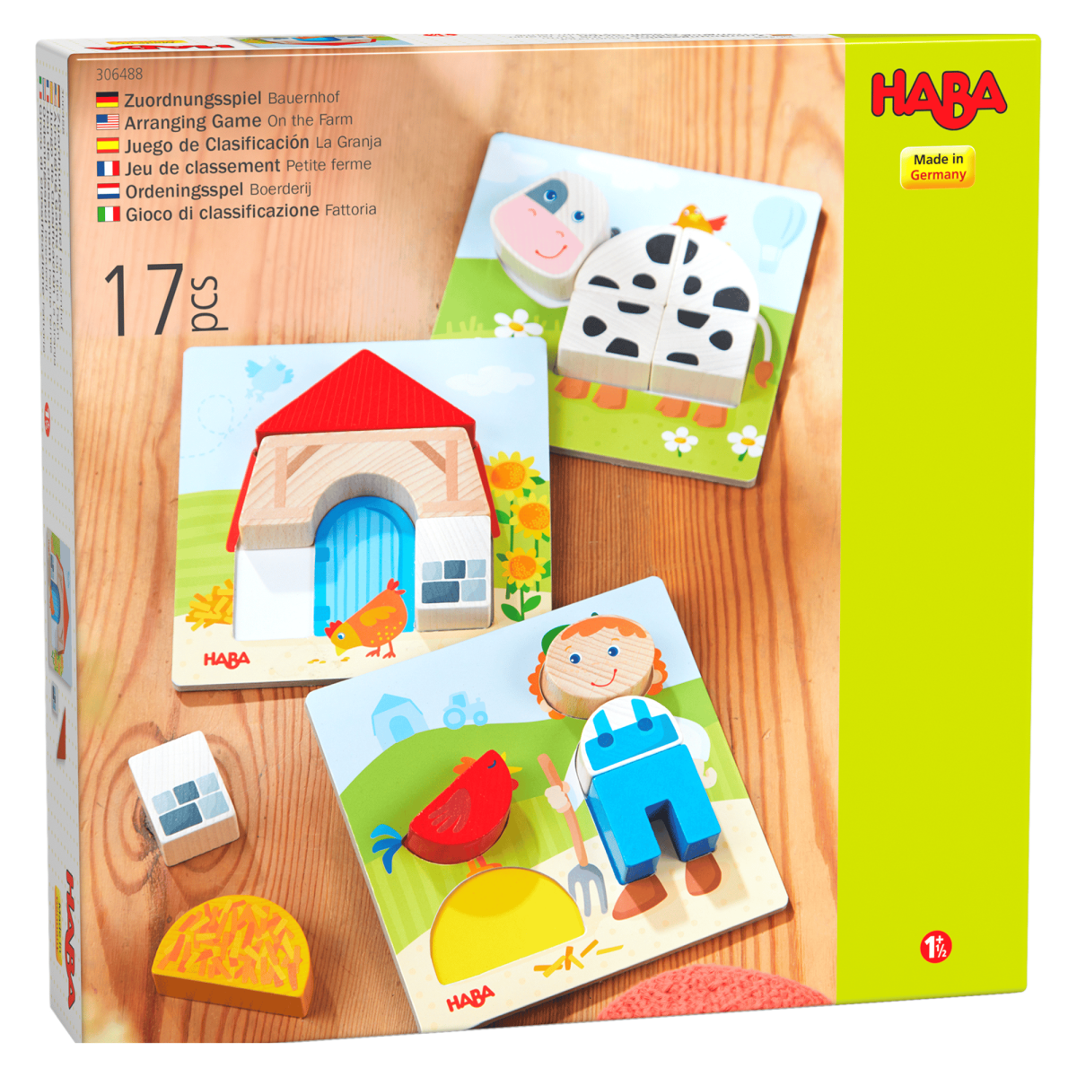 Lasse deinen kleinen Schatz eintauchen in eine Welt voller Farben mit dem Zuordnungsspiel „Bauernhof“ von HABA. Mit drei Vorlagentableaus und 14 griffigen Puzzle-Steinen aus Holz wird das Spielen zu einem aufregenden Abenteuer für Puzzle-Einsteiger ab ca. 18 Monaten. Schau zu, wie auf den bunten Vorlagentableaus nach und nach lebendige Bauernhofbilder entstehen, während dein Kind die Plättchen liebevoll zuordnet. Durch dieses Spiel werden nicht nur das genaue Schauen und die Feinmotorik gefördert, sondern auch das spielerische Lernen von Formen und Zusammenhängen. Taucht gemeinsam ein in diese zauberhafte Welt des Bauernhofs und erlebt Stunden voller Freude und Lachen, während dein kleiner Schatz spielerisch lernt und wächst.