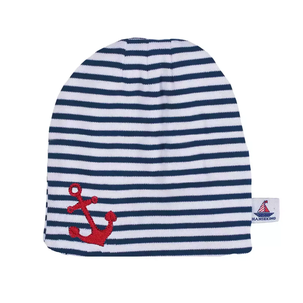 Ahoi! Mit dieser tollen Kindermütze im längeren Beanie Style von Hansekind können kleine Matrosen auf große Entdeckungstour gehen, ohne dabei zu frieren. Die doppellagige Verarbeitung macht sie besonders strapazierfähig und die hochwertige Ankerstickerei ist ein edler Hingucker. Ein unerlässliches Accessoire für einen Ausflug bei Wind und Wetter.