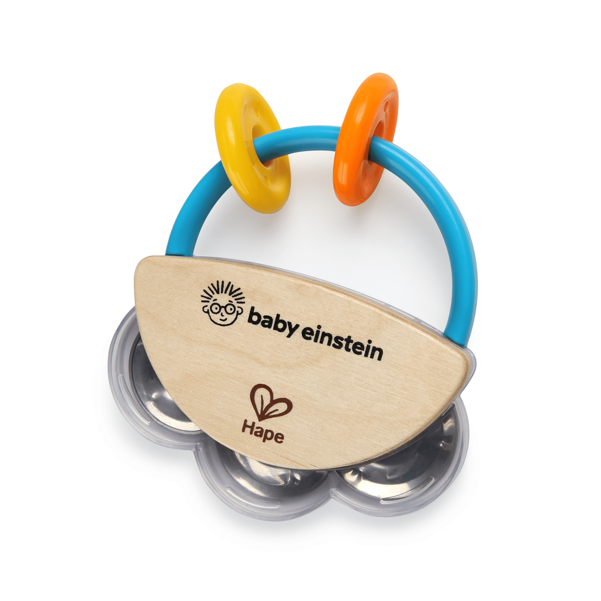 Ringspiel und Tamburin kombiniert in einem Spielzeug. Greifen, schieben und im Takt bewegen: In diesem Mini Tamburin sind die besten Eigenschaften unterschiedlicher Materialien kombiniert worden! Fördert die Feinmotorik und hilft beim konzentrierten Zuhören für Babys ab drei Monaten.