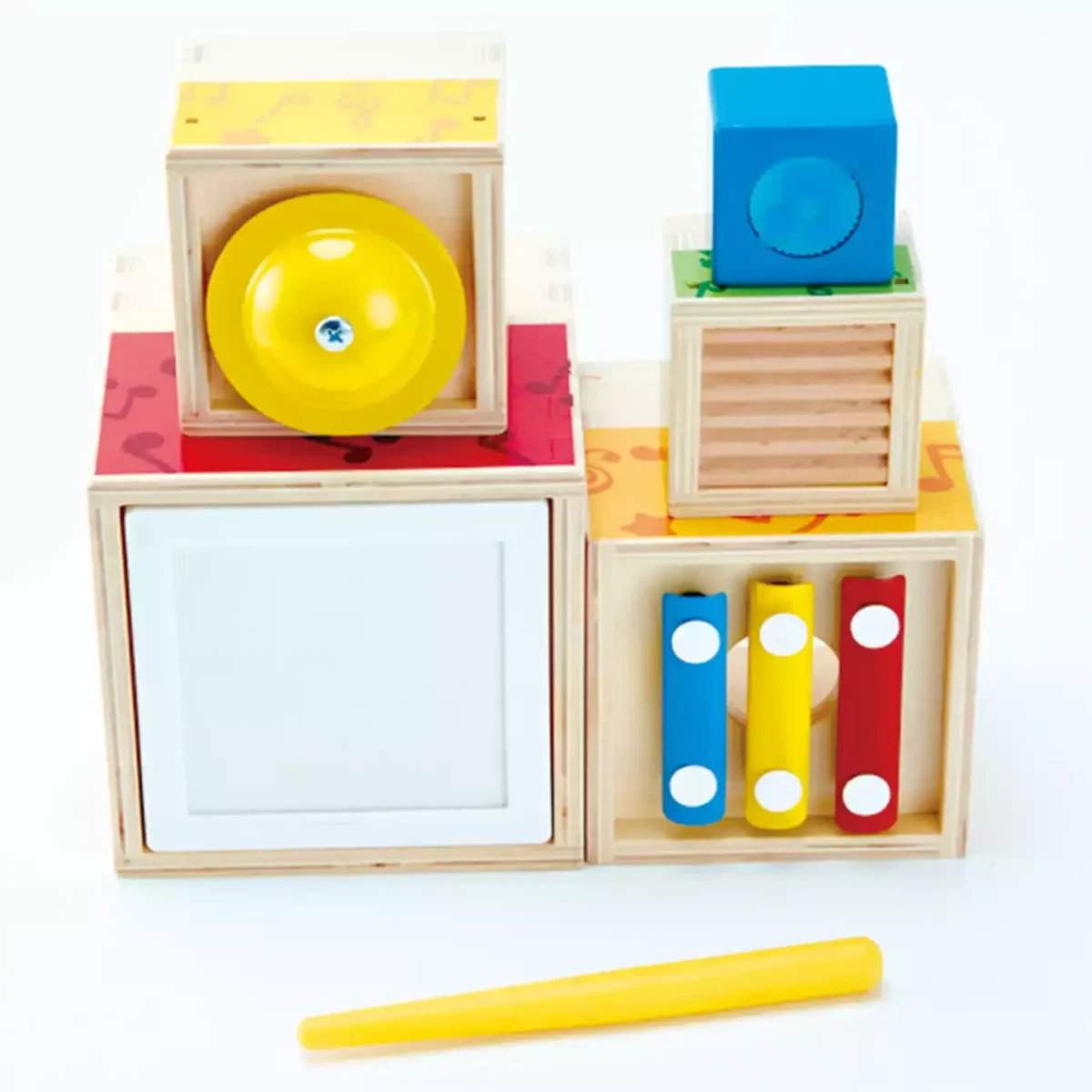 Mit dem Musik-Stapelwürfel von Hape kann dein kleiner Schatz wunderschöne Musik erzeugen und Melodien sowie den Rhythmus erkunden. Die verschieden großen Blöcke können beliebig aufeinander gestapelt werden und die Musik wird spielerisch erlernt. Durch den praktischen Tragegriff und die Möglichkeit die Würfel ineinander zu stapeln, ist das Musik-Set sehr handlich und kann überall mitgenommen werden.