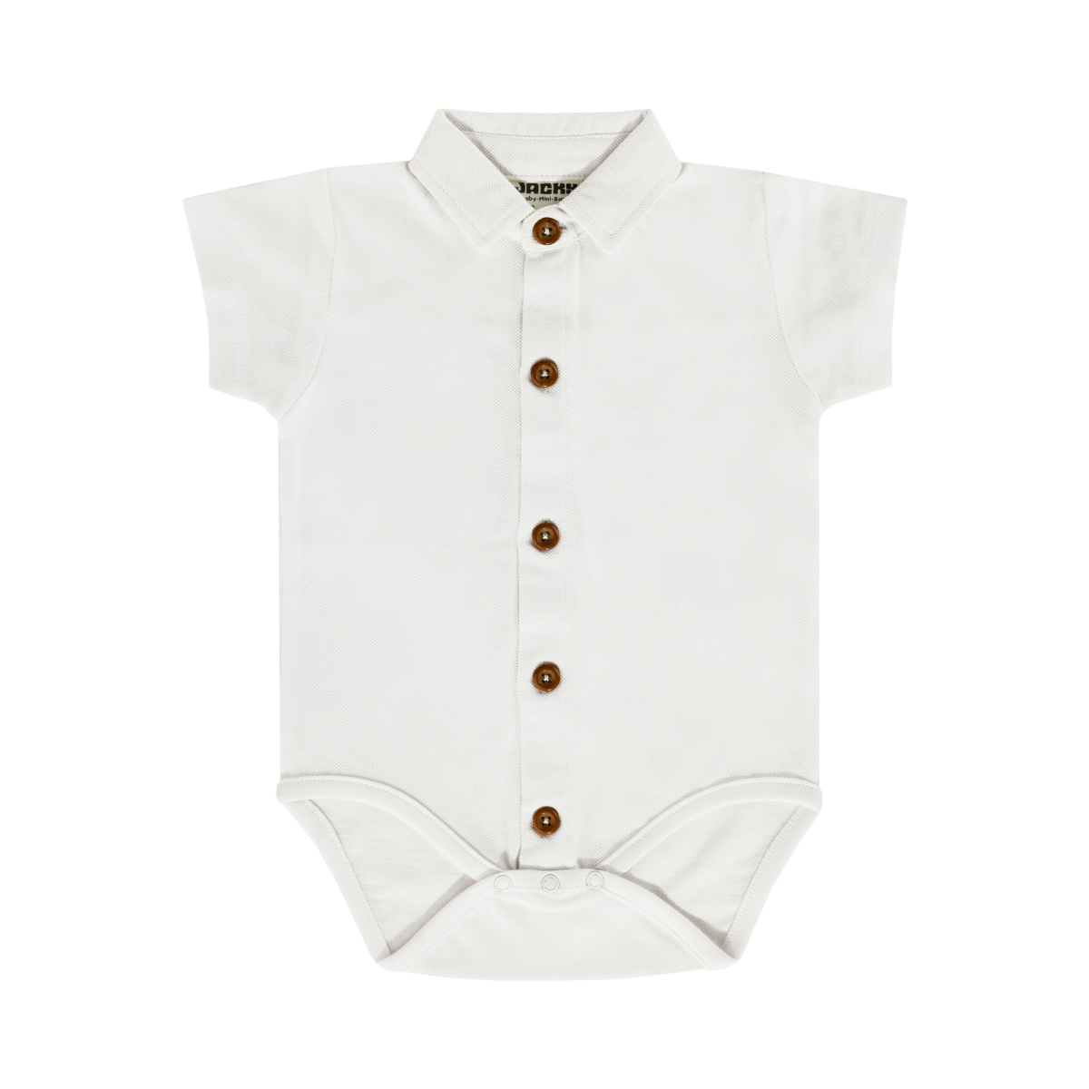 Der niedliche Hemdbody von Jacky passt zu vielen Anlässen. Mit den praktischen Knöpfen hat der Body einen schicken Look. Die Druckknöpfe im Beinbereich erleichtern zudem das An- und Ausziehen. Der Body ist aus 100% Bio-Baumwolle hergestellt.