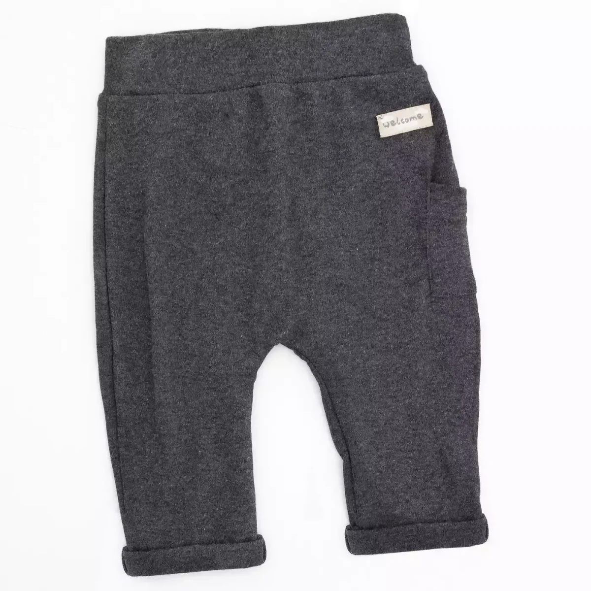 Diese unifarbene Jacky Hose Lama Anthrazit mit kleiner seitlicher Tasche besteht aus 100% kuschelweicher Baumwolle. Dank der Stretchbündchen sitzt sie besonders bequem. Zudemkann die Jacky Hose bei 40 °C gewaschen werden.
