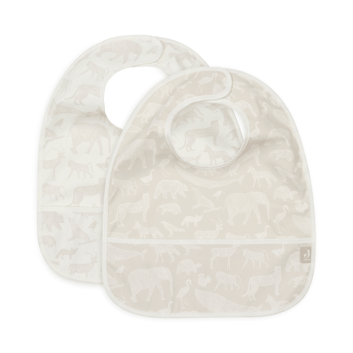 Mit dem Lätzchen „Animals“ von Jollein kann es sich dein Liebling schmecken lassen. Und wenn mal etwas daneben geht? Kein Problem – das wasserdichte Material schützt die Kleidung deines Kindes vor Kleksen und Essensstückchen. Zudem fungiert der untere Rand als Auffangschale und hält alles sicher fest, damit die Kleidung deines Babys sauber bleibt. Der süße Tier-Print zaubert jedem ein Lächeln ins Gesicht. So macht das Essen gleich doppelt so viel Spaß.