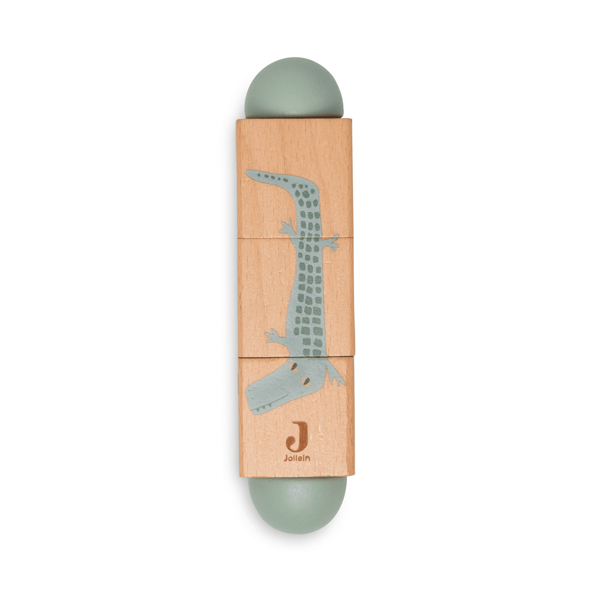 Das Holz-Drehpuzzle Jungle Jambo von Jollein ist ein bezauberndes Stapelpuzzle, das mit vier niedlichen Dschungeltieren begeistert: Giraffe, Zebra, Gepard und Krokodil. Jeder Würfel eines Tieres muss in die richtige Position gedreht werden, was den Spielspaß mit einer lehrreichen Herausforderung verbindet.