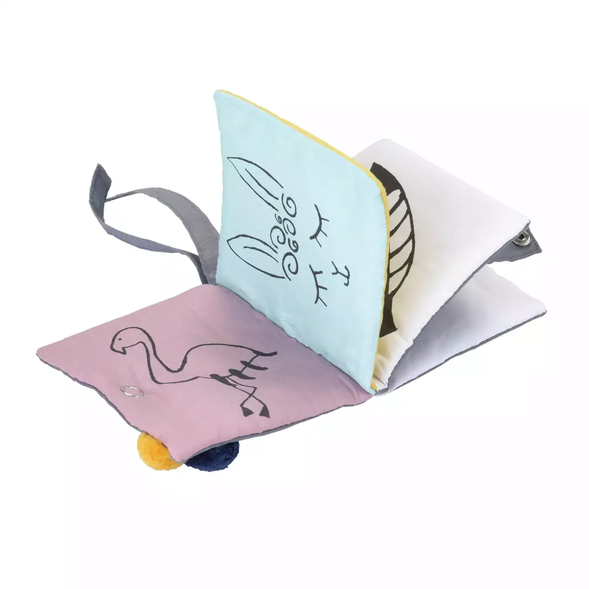 Das mehrseitige Soft-Buch Lama von kikadu ist kuschelweich und wird deinem kleinen Schatz große Freude bereiten. Du kannst es einfach mit einer Schlaufe und einem Druckknopf am Kinderwagen, Babyschale oder am Bett befestigen. Das knisternde Papier und die wunderschönen Farben laden deinen kleinen Schatz zum Spielen und Entdecken ein. Beim Durchblättern der Seiten lernt dein Baby auch verschiedene Tiere kennen.