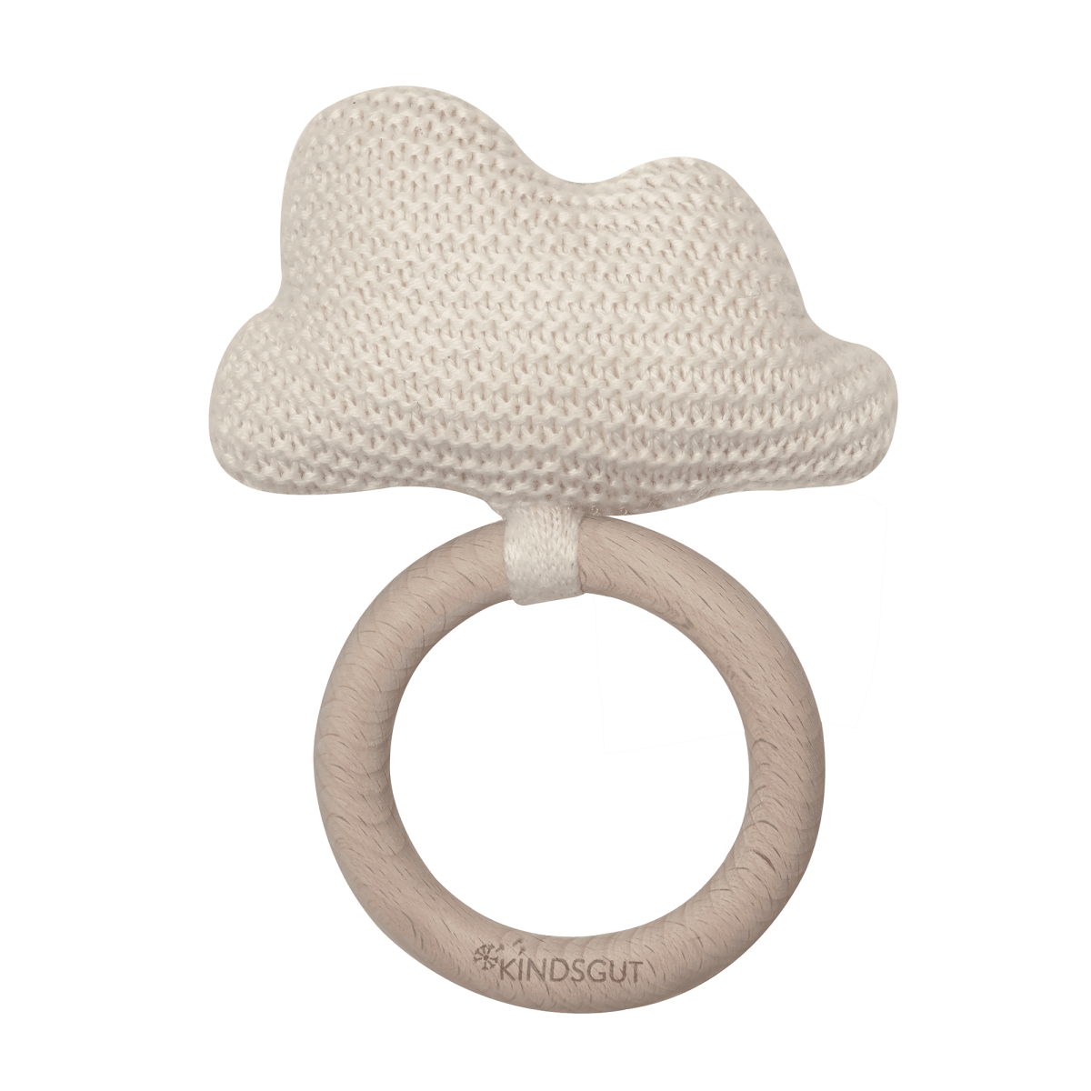 Dieser wunderschöne Häkel-Greifling Wolke von KINDSGUT kann sowohl als Rassel, aber dank des weichen und umbehaltenden Holzes auch zum Zahnen genutzt werden.