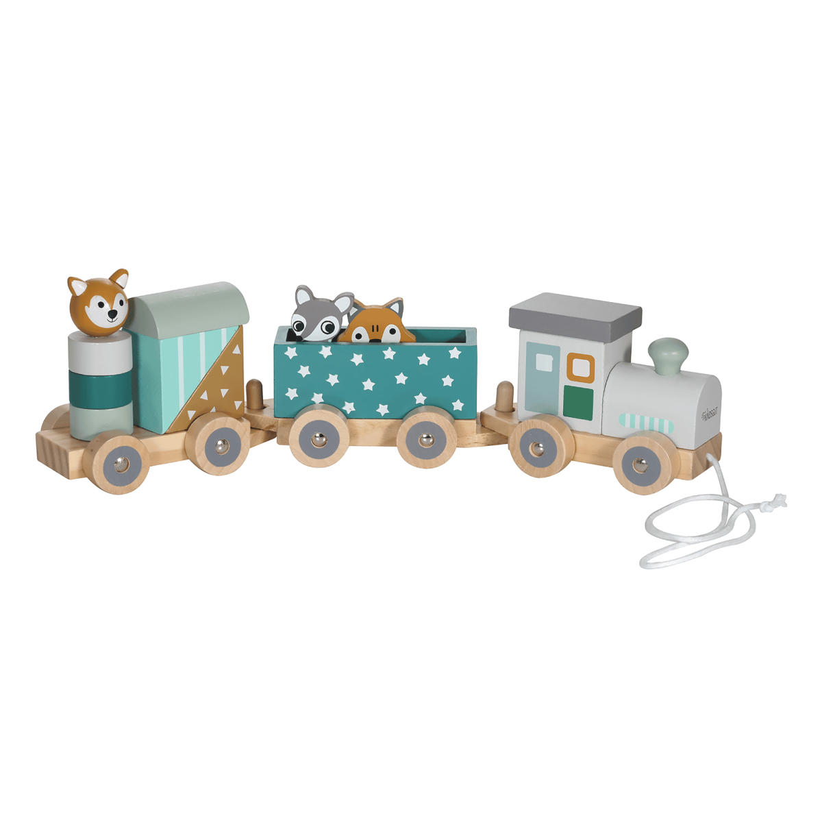 Die dezenten Farben und niedlichen Tiere machen die Holzeisenbahn zum Hingucker im Kinder- oder Wohnzimmer und sorgen für Spielspaß bei Groß & Klein.