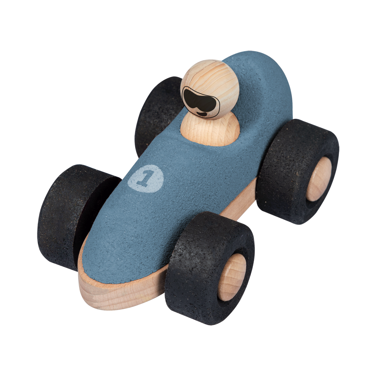 Der Schiebeauto E-Cork Racer Blue von korko ist ein liebevoll gestaltetes Rennauto, das aus Kork und FSC-zertifiziertem Holz gefertigt wurde. Dank der Materialien ist es besonders schonend zu empfindlichen Oberflächen und eignet sich ideal für Kinder ab etwa 18 Monaten.