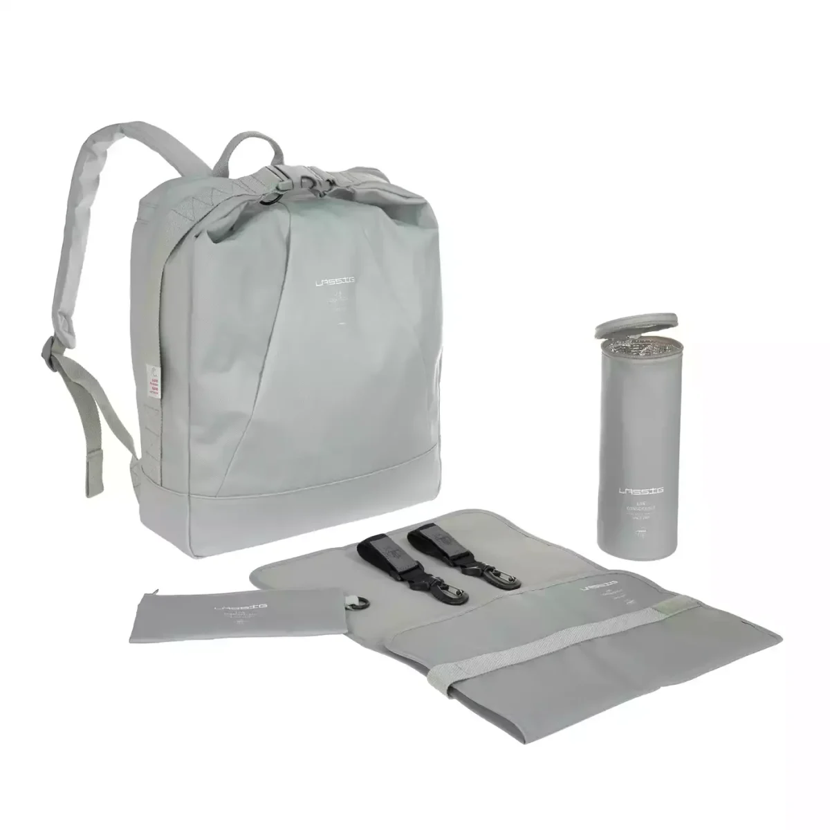 Der Wickelrucksack mit gepolsterten Schultergurten verfügt über ein geräumiges Hauptfach sowie zwei weitere Staufächer außen. Das Reißverschlussfach am Rücken ermöglicht einen schnellen und sicheren Zugriff auf Schlüssel und Co. Praktisches Zubehör gehört zur Grundausstattung. Dazu zählen eine wasserabweisende Wickelunterlage, ein isolierter Flaschenhalter, eine herausnehmbare Gläschenhalterung und eine Kinderwagenbefestigung. Auch ohne Wickelzubehör bleibt der Rucksack ein toller Begleiter.