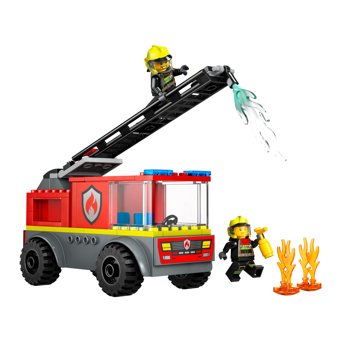 Tatütata – hier kommt das LEGO City Feuerwehrleiterfahrzeug. Mit diesem fantasievollen Set können kleine Alltagshelden ab ca. 4 Jahren in die Rolle mutiger Feuerwehrleute schlüpfen und ihre ganz eigenen Abenteuer erleben. Ob brennende Fantasiegebäude oder Katzen auf Bäumen – hier wird jedes Szenario zur spannenden Geschichte. Das Set enthält ein klassisches Feuerwehrfahrzeug mit Fahrerkabine, ausfahrbarer Leiter und einem Spielzeugfeuerlöscher, der bereitsteht, um mutig gegen lodernde LEGO-Flammen anzutreten.