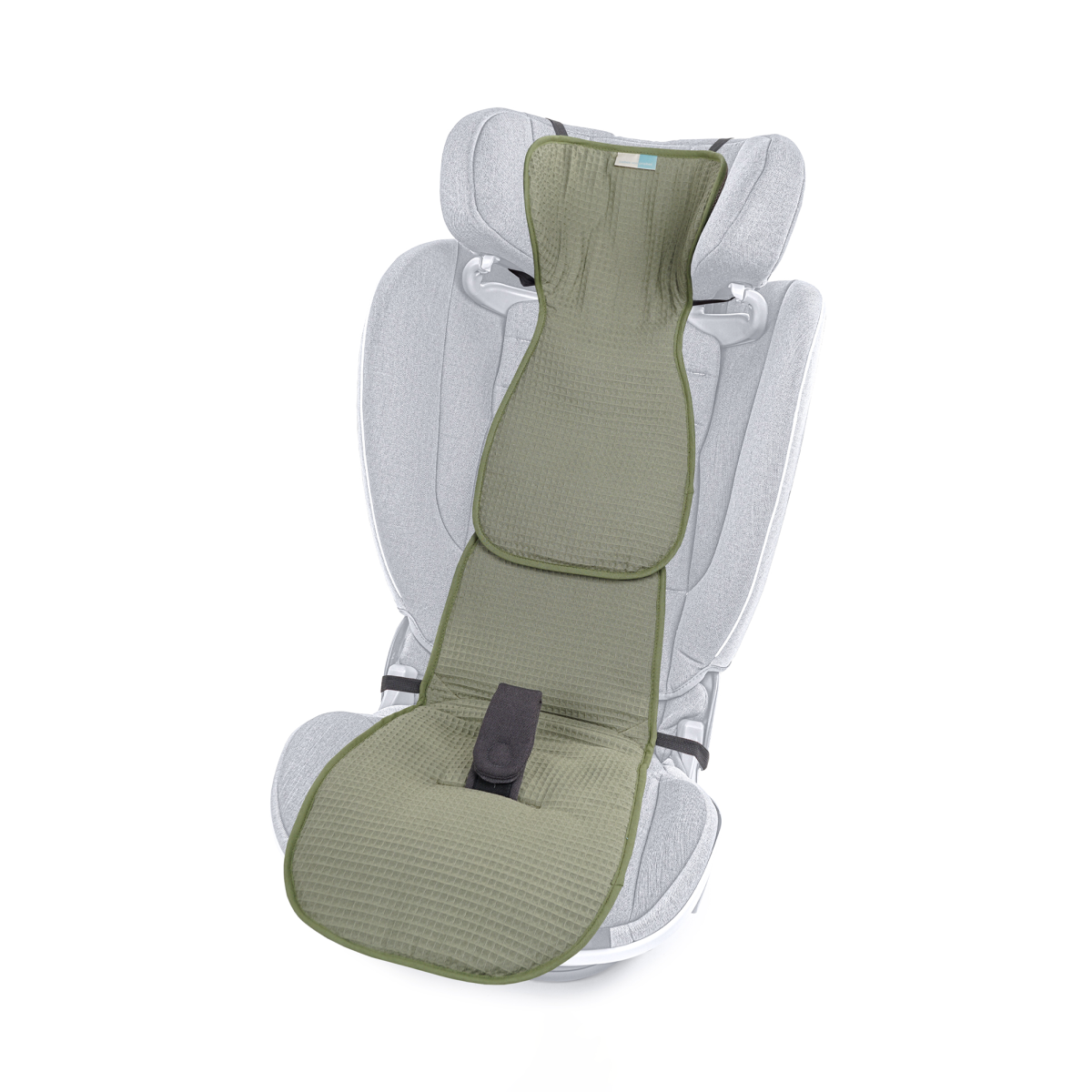 Das besondere an dieser Auflage ist die beidseitige Nutzung, die sich an wechselnde Bedingungen anpassen lässt. Die Vorderseite, die aus einem Mesh-Funktionsgewebe besteht, ist atmungsaktiv und kann die Körpertemperatur regulieren. So wird dein Kind im Sommer vor einer Überhitzung geschützt. Auch der Waffelpiqué-Baumwollstoff auf der Rückseite dient als natürlicher Schwitzschutz. Das bedeutet jedoch nicht, dass dein Liebling bei kühleren Tagen in der Auflage friert – im Gegenteil: die weiche Baumwolle bietet auch Wärme und Bequemlichkeit.