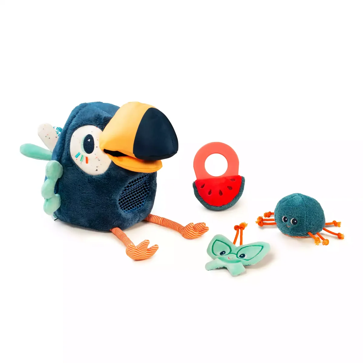 Dieses niedliche Spieltier Pablo von Lilliputiens kann dein kleiner Schatz füttern – so sind der Kreativität keine Grenzen gesetzt! Den farbenfrohen Feinschmecker kann dein Kind mit einer Spiegel-Spinne, einem Knister-Schmetterling oder einer Beißring-Wassermelone füttern, dies regt nicht nur die Feinmotorik und Vorstellungskraft, sondern auch den Hörsinn an.