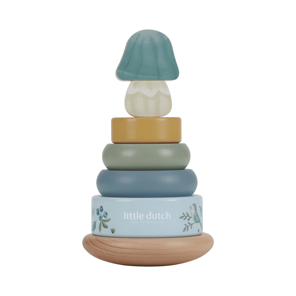 Der Holz-Stapelturm Forest Friends von Little Dutch lädt kleine Entdecker zu spannenden Stapelabenteuern ein! Dieser liebevoll gestaltete Stapelturm besteht aus mehreren Ringen, die in der richtigen Reihenfolge aufeinander gesteckt werden, bis der Pilz den Turm krönt. Beim Stapeln der Ringe werden die Hand-Augen-Koordination, die Feinmotorik und das räumliche Denken deines Kindes geschult. Durch das Experimentieren mit den verschiedenen Größen der Ringe lernt dein Kind spielerisch, Formen zu erkennen und zuzuordnen.