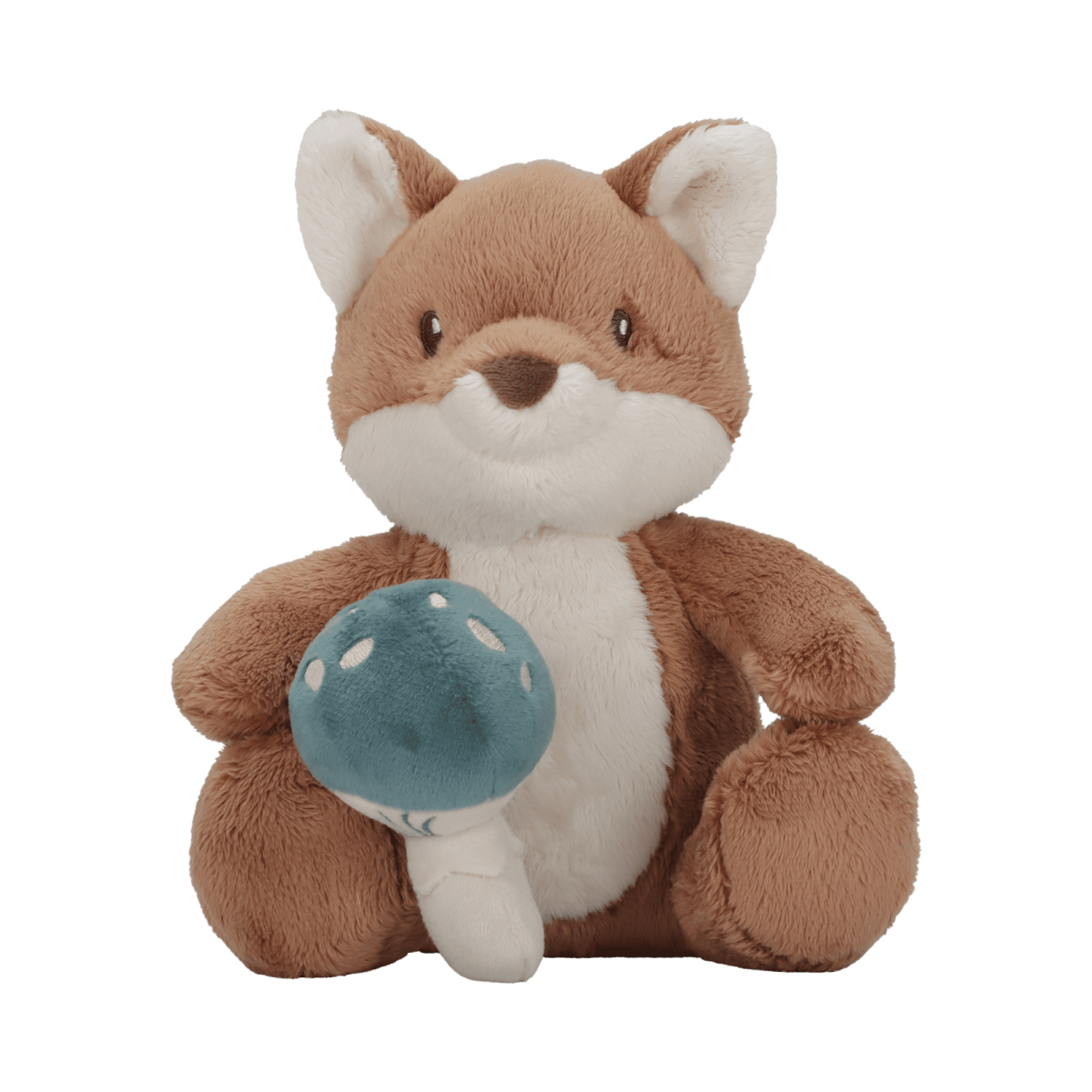 Mit seinem weichen, flauschigen Fell lädt der süße Fuchs zum Kuscheln und Schmusen ein. Ein besonderer Hingucker ist ein kleiner Pilz, den er in seiner Pfote hält und den er überallhin mitnimmt.
