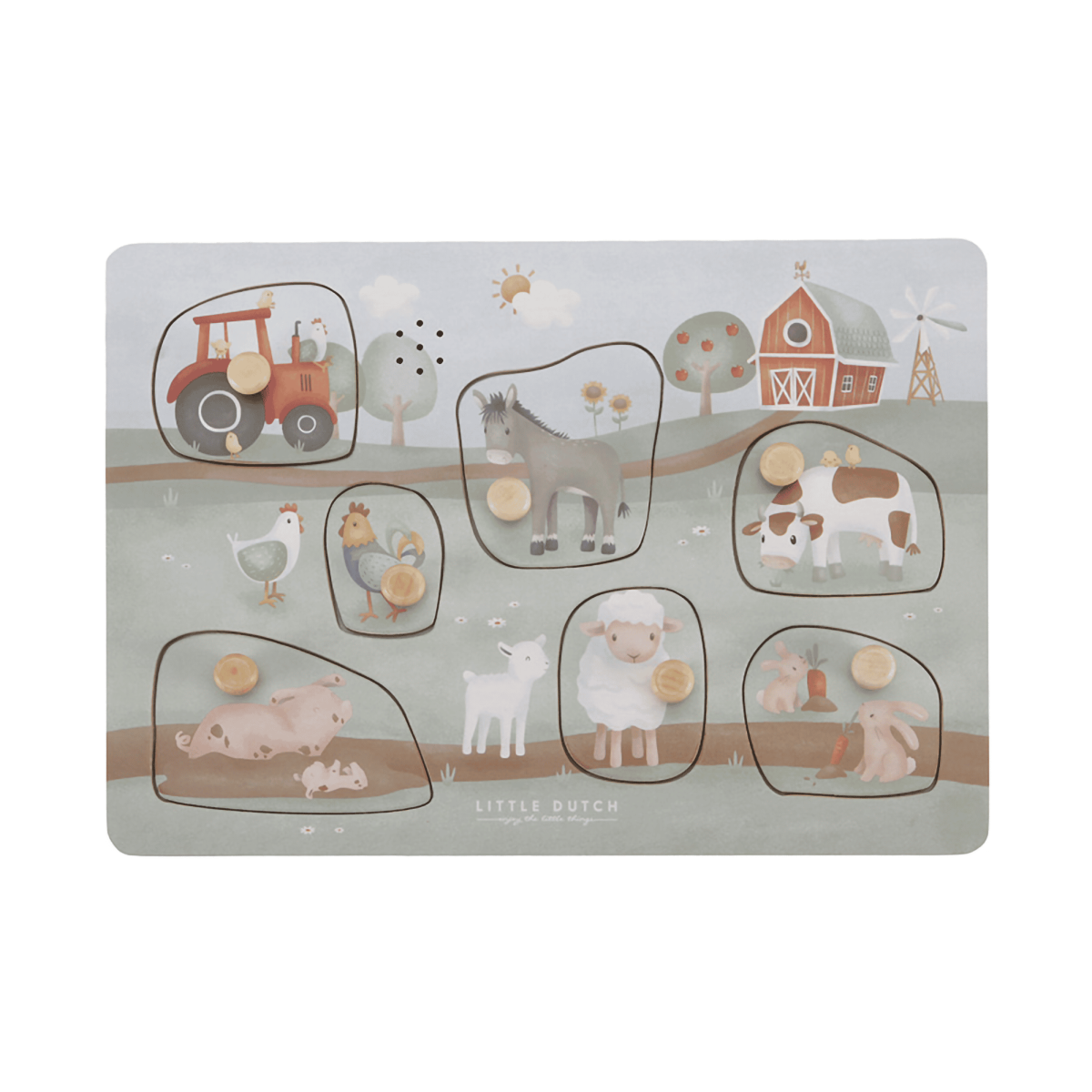 Lasse deinen Schatz mit diesem Soundpuzzle Little Farm von Little Dutch eine Welt voller Bauernhofspaß entdecken! Dieses interaktive Puzzle präsentiert sieben liebenswerte Tiere und einen charmanten Traktor, die alle mit authentischen Geräuschen zum Leben erweckt werden, wenn sie an ihren Platz gesetzt werden – jedes Tier hat sein eigenes charakteristisches Geräusch, das die Neugier und die Sinne deines kleinen Schatzes anregt.