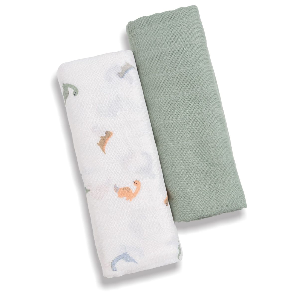 Das 2er-Set Pucktücher Dino von LITTLE ONE besteht aus einem einfarbig grünem Tuch und einem Tuch in einem coolen Allover-Dino-Design.
