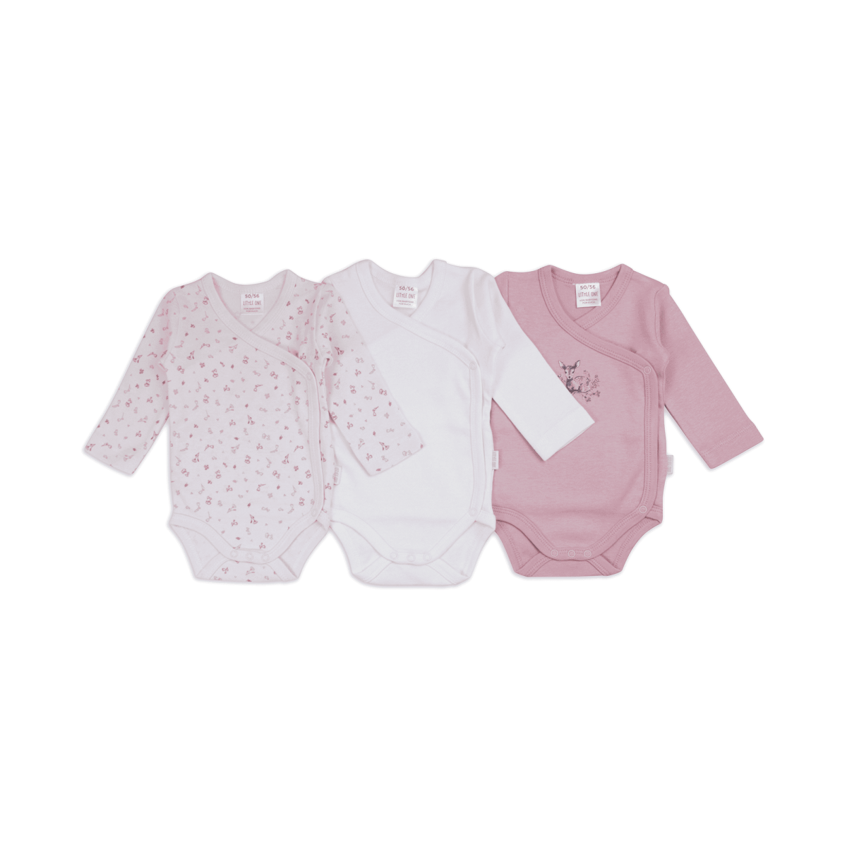 Mit diesem praktischen 3er-Pack Wickelbodys Reh von LITTLE ONE ist dein kleiner Liebling nicht nur perfekt für den Alltag ausgerüstet, sondern dank der hübschen Blumen und Reh-Motive auch ein echter Hingucker! Da die Bodys außerdem zu 100% aus Bio-Baumwolle bestehen, sind sie schonend zu Babys empfindlicher Haut und zur Umwelt. Die praktischen Druckknöpfe erleichtern dir und deinem Nachwuchs zudem das An- und Ausziehen – so steht einem entspannten Start in den Tag nichts mehr im Wege!