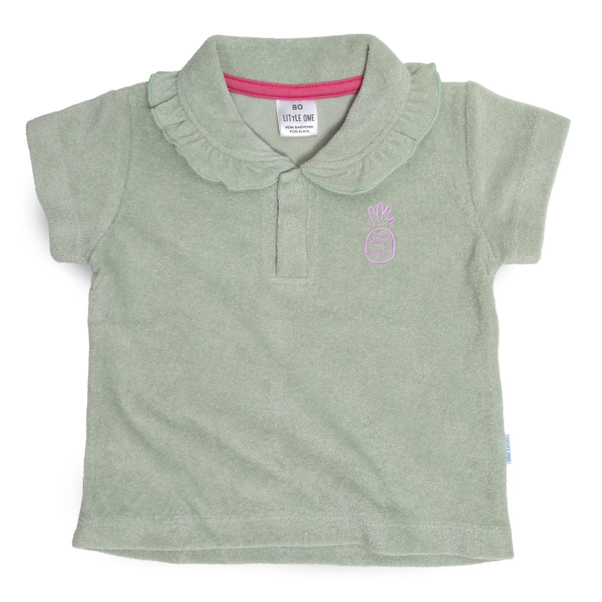 Das Frottee-Shirt von LITTLE ONE ist das ideale Oberteil für sonnige Sommertage. Es besteht aus einem weichen Frottee-Material und sorgt für ein angenehmes Tragegefühl. Der verspielte Kragen mit Rüschenkante und die kleine Ananas-Stickerei auf der Brust machen das Shirt zu einem echten Hingucker für deinen kleinen Liebling.